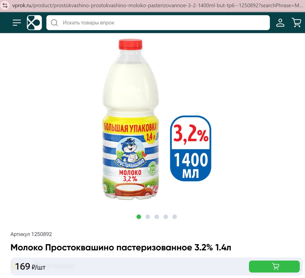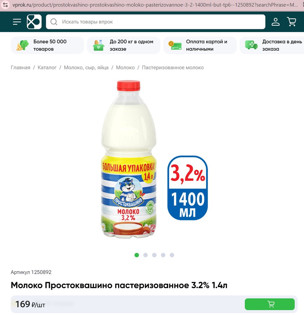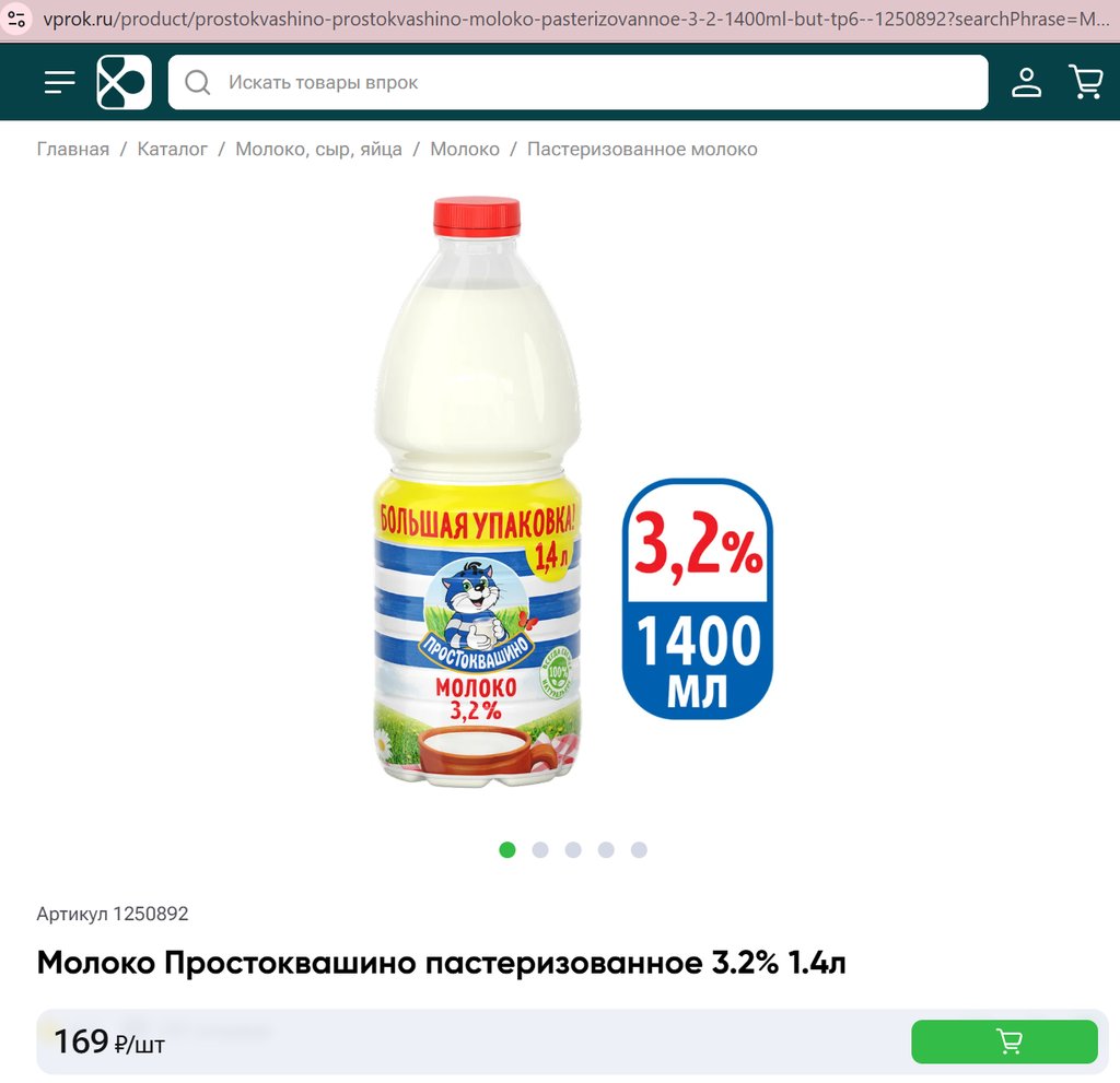 Молоко Простоквашино питьевое 3.2%, 1.4л