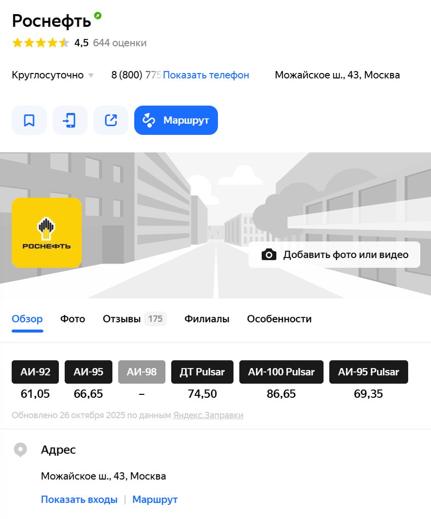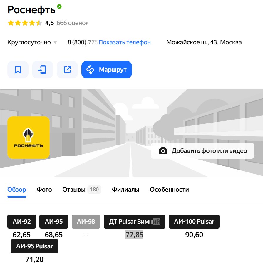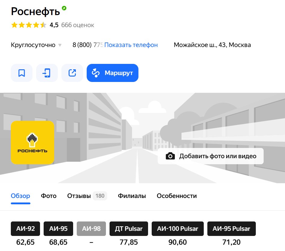 Магазин: РОСНЕФТЬ АЗС, Москва