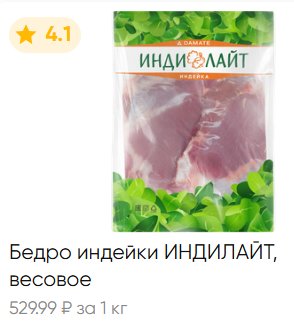 Бедро индейки Индилайт на кости без кожи 1кг.