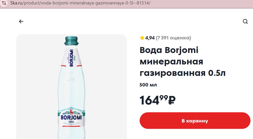 Вода Borjomi Стекло газированная 500мл