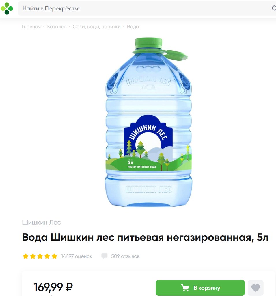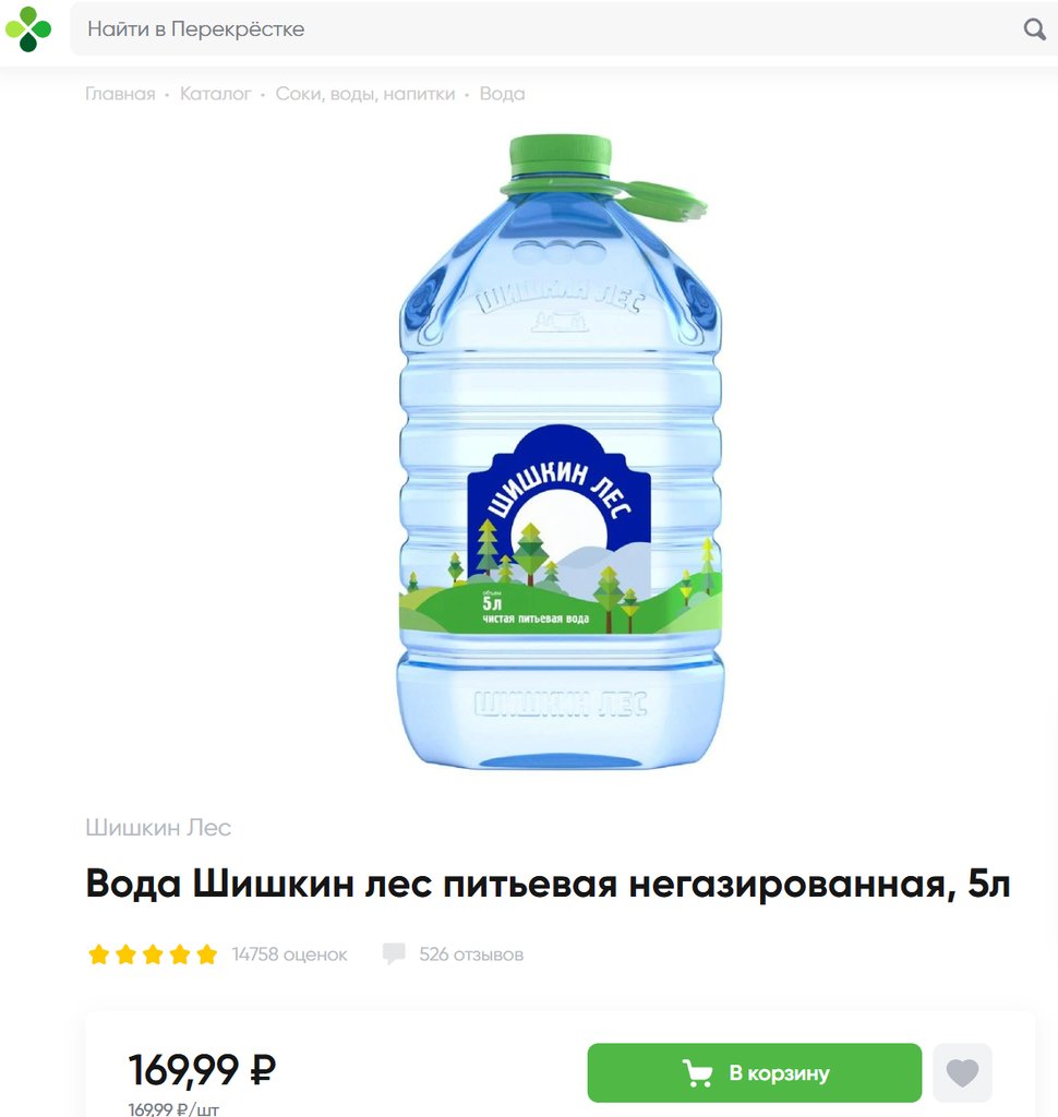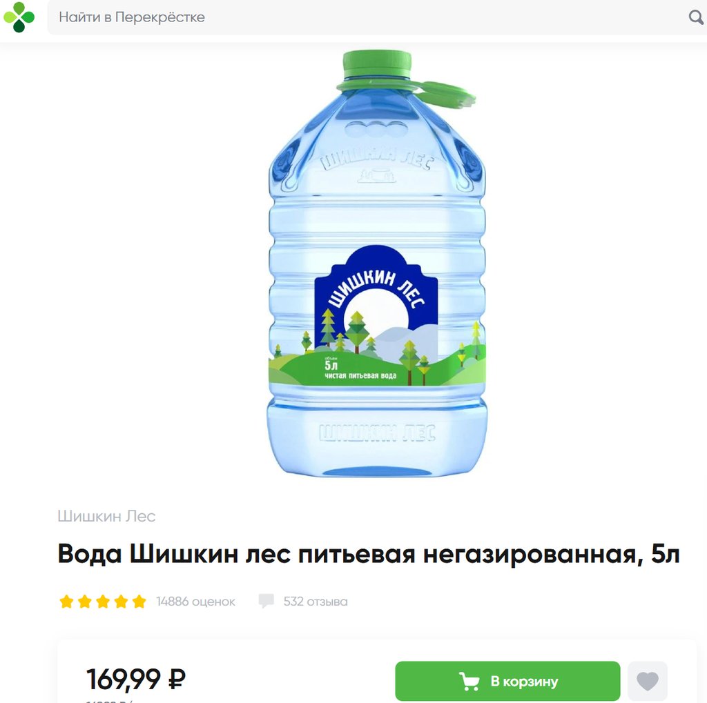 Вода Шишкин Лес питьевая 5л