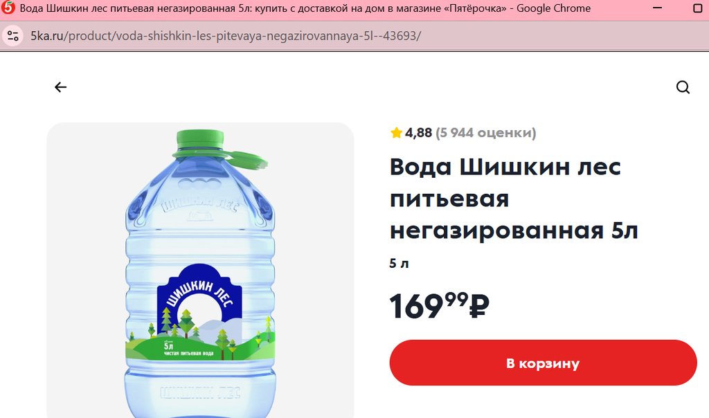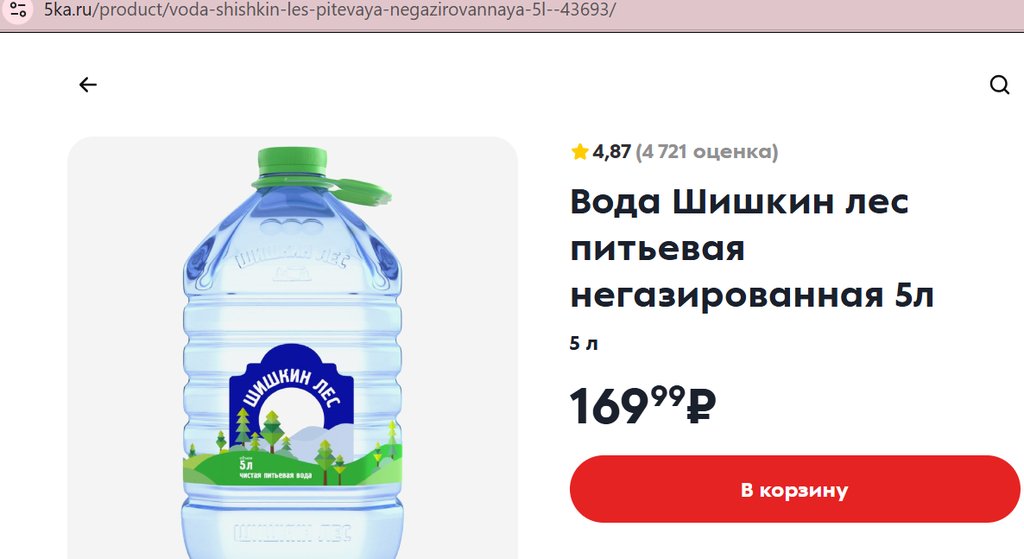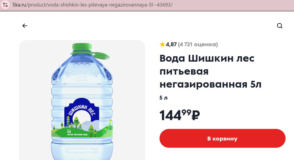 Вода Шишкин Лес питьевая 5л