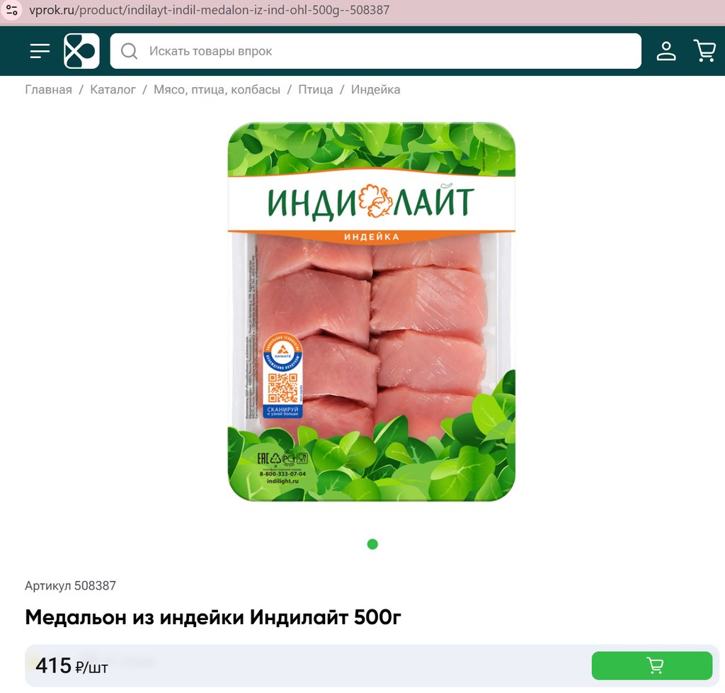 Медальон из индейки Индилайт 500г
