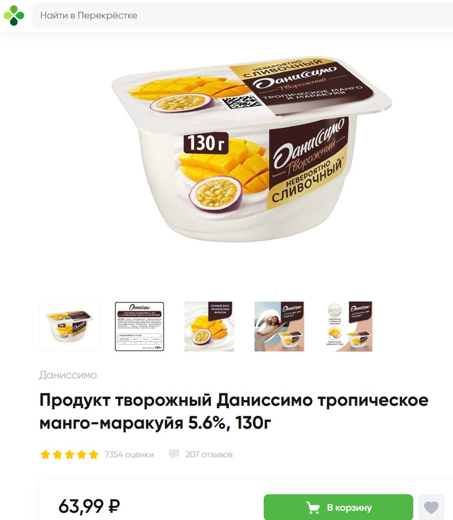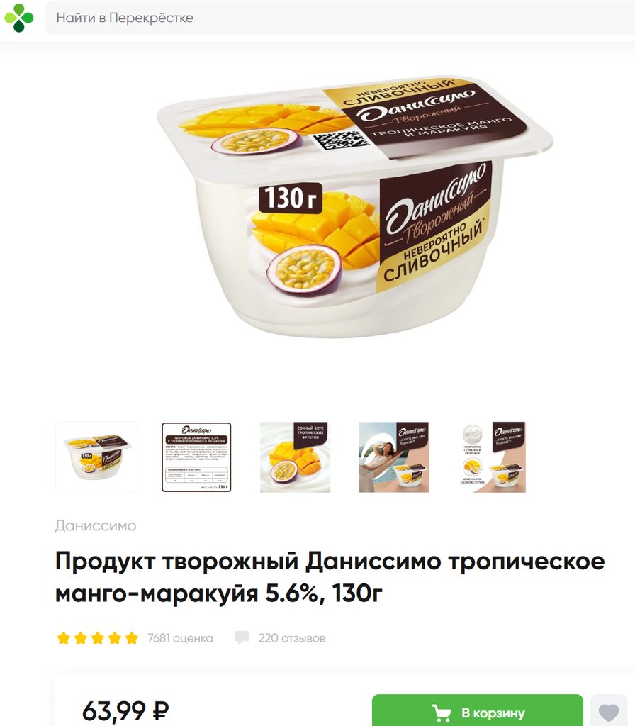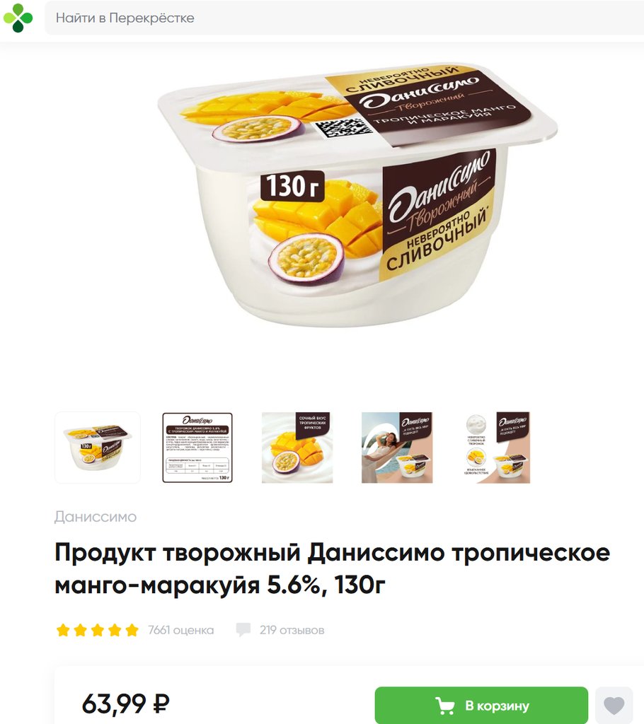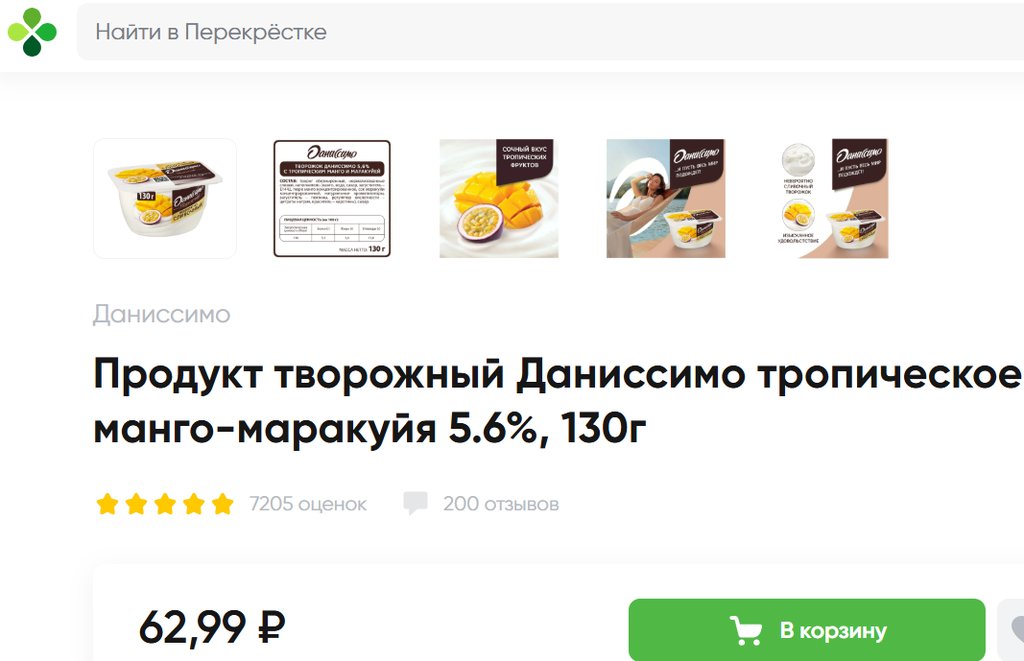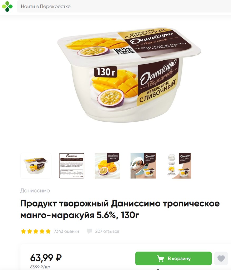 Даниссимо с тропическим манго и маракуйей 5.6% 130г