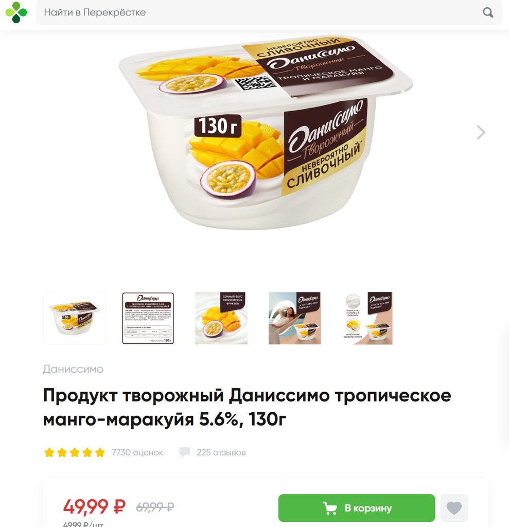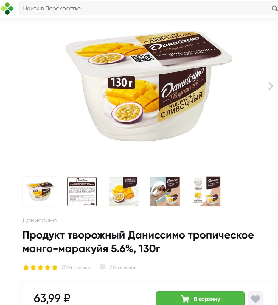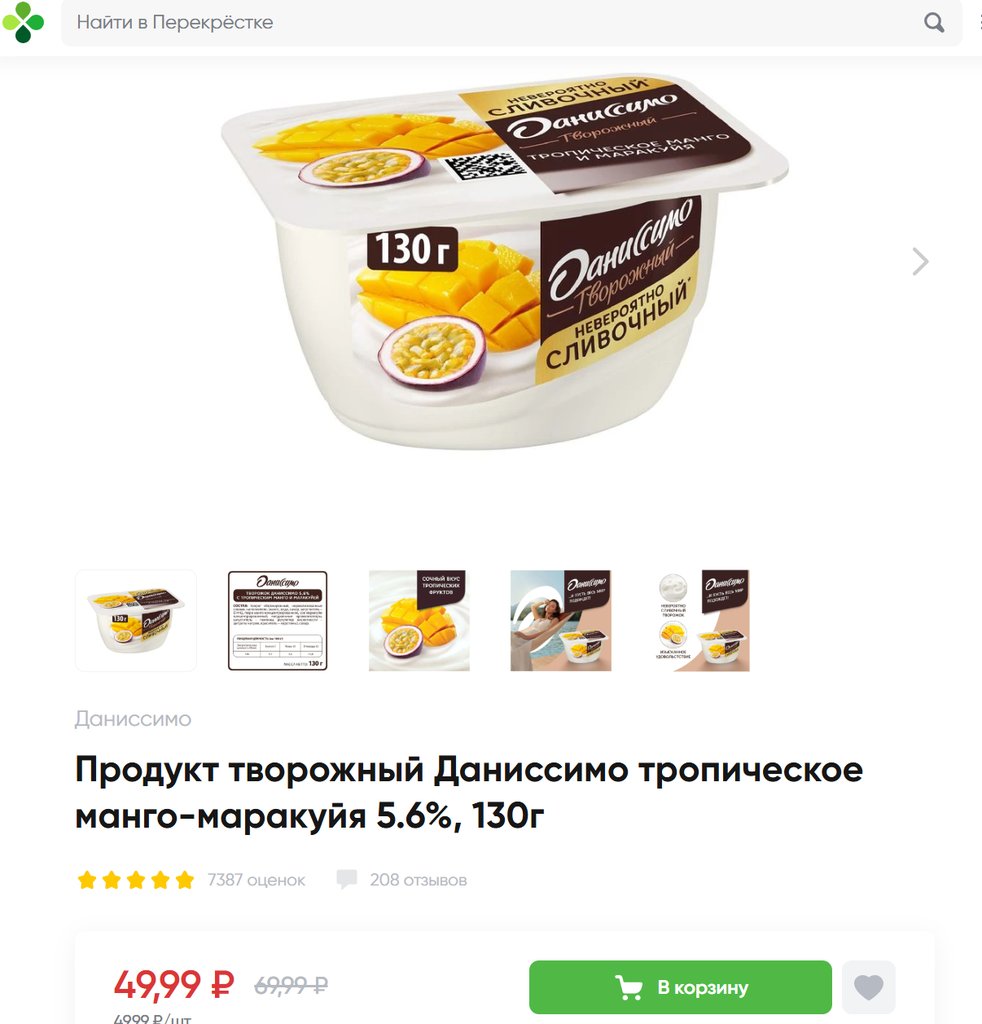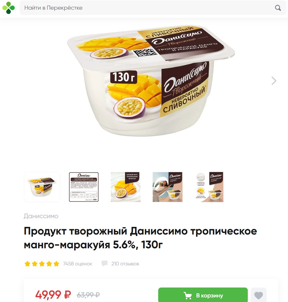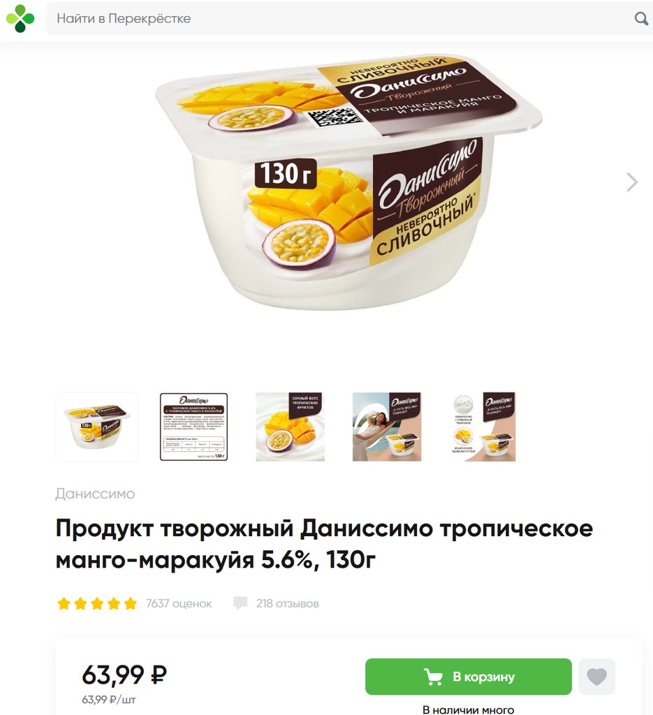 Даниссимо с тропическим манго и маракуйей 5.6% 130г