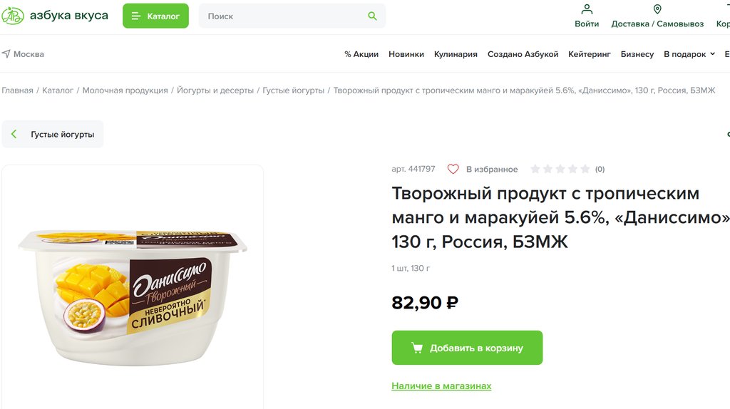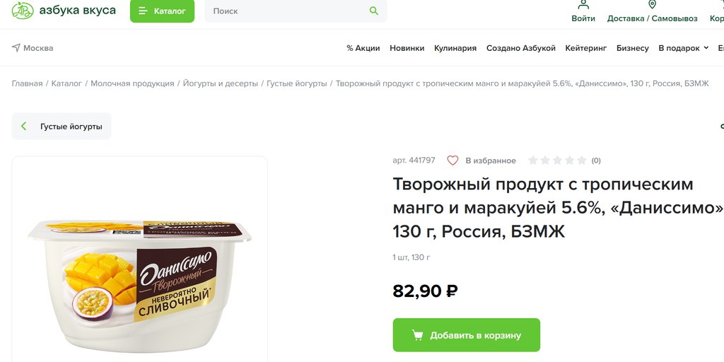 Даниссимо с тропическим манго и маракуйей 5.6% 130г