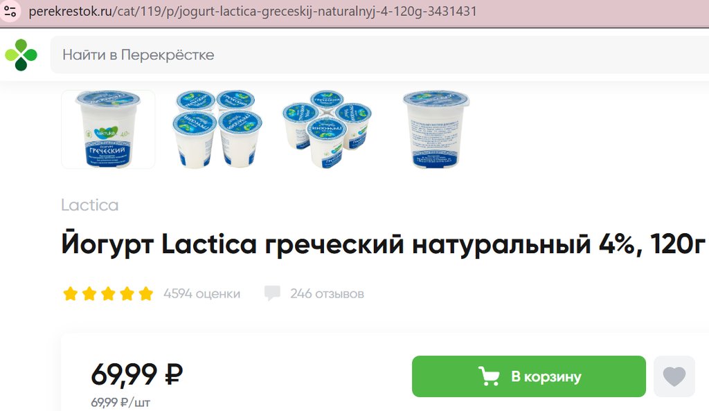 Йогурт Lactica Греческий 4% 4шт. 120г