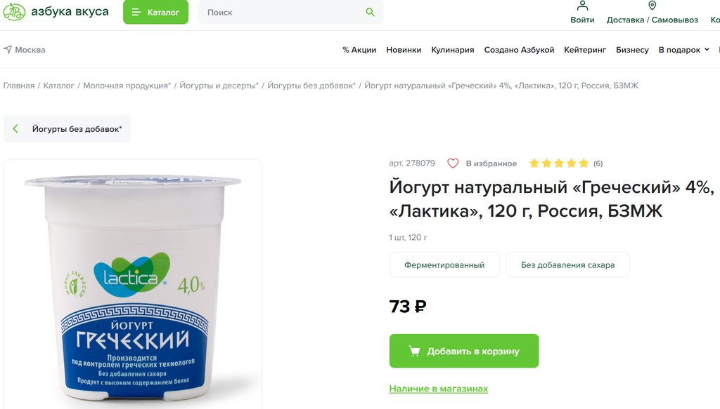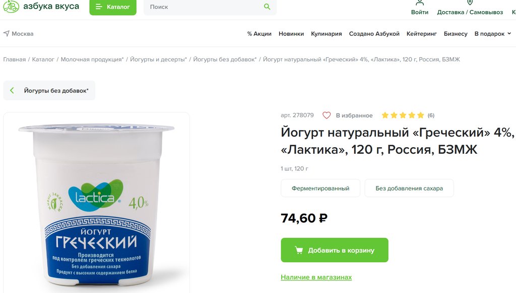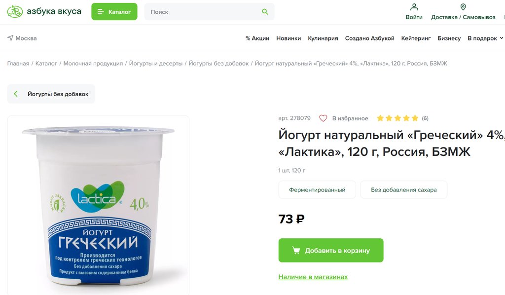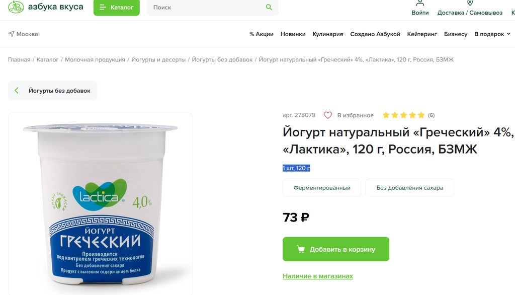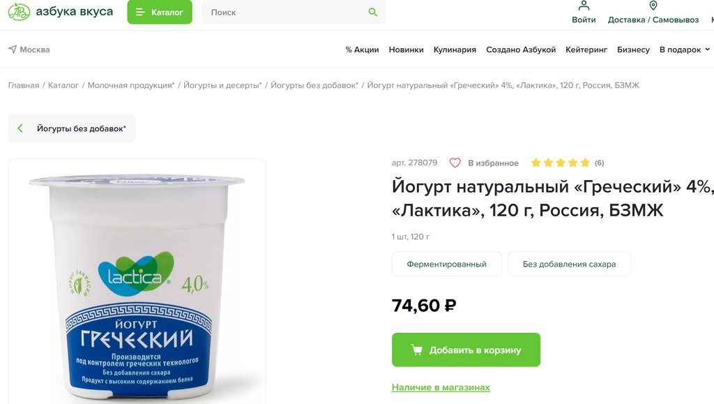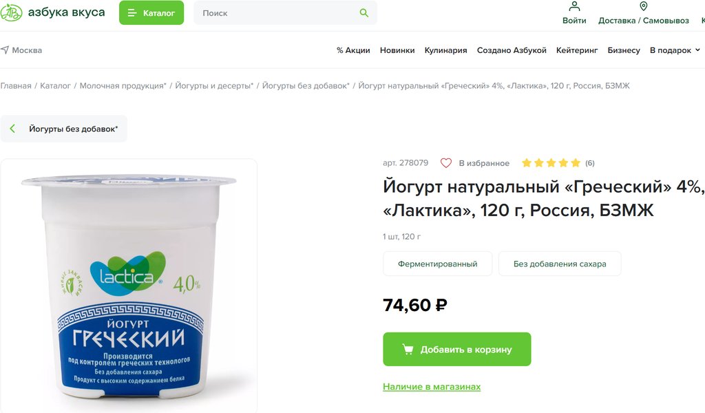 Йогурт Lactica Греческий 4% 4шт. 120г