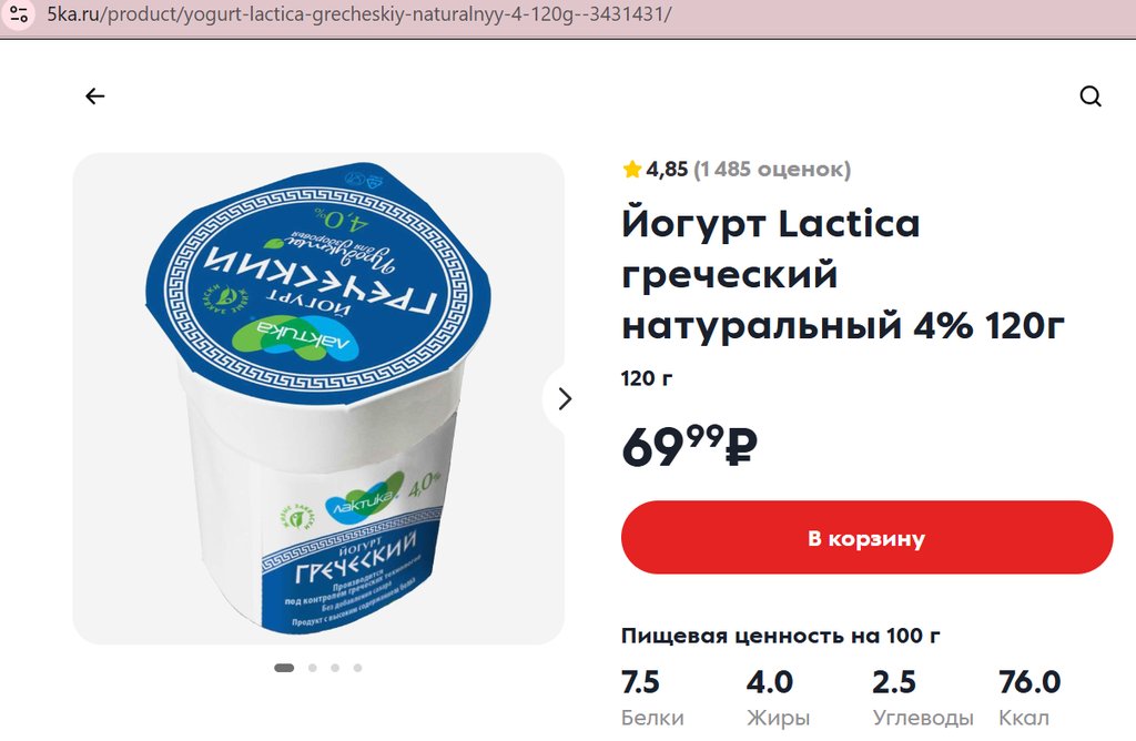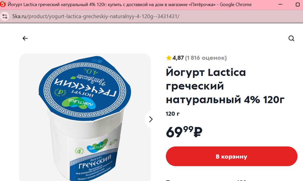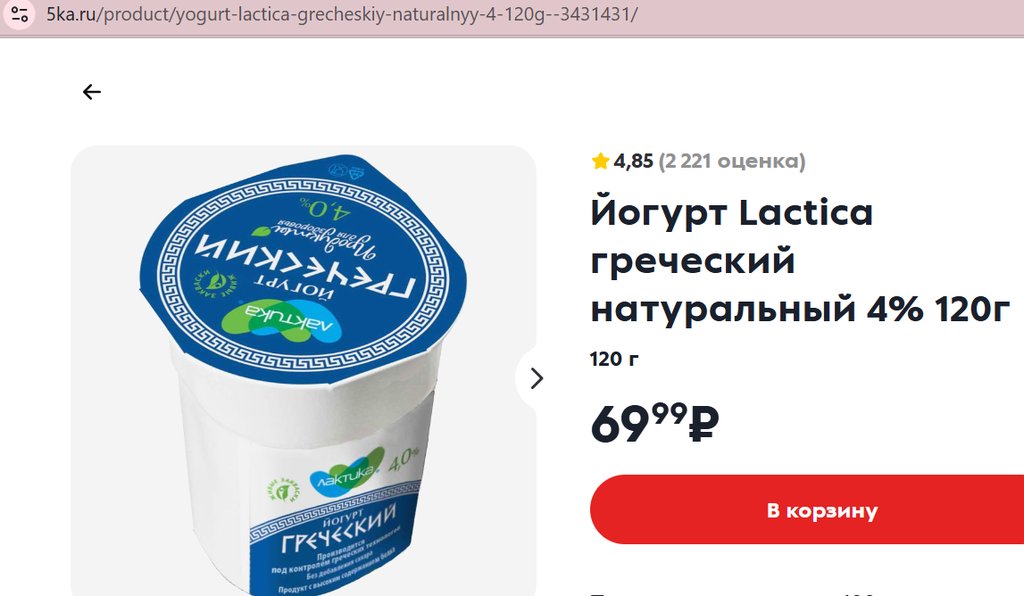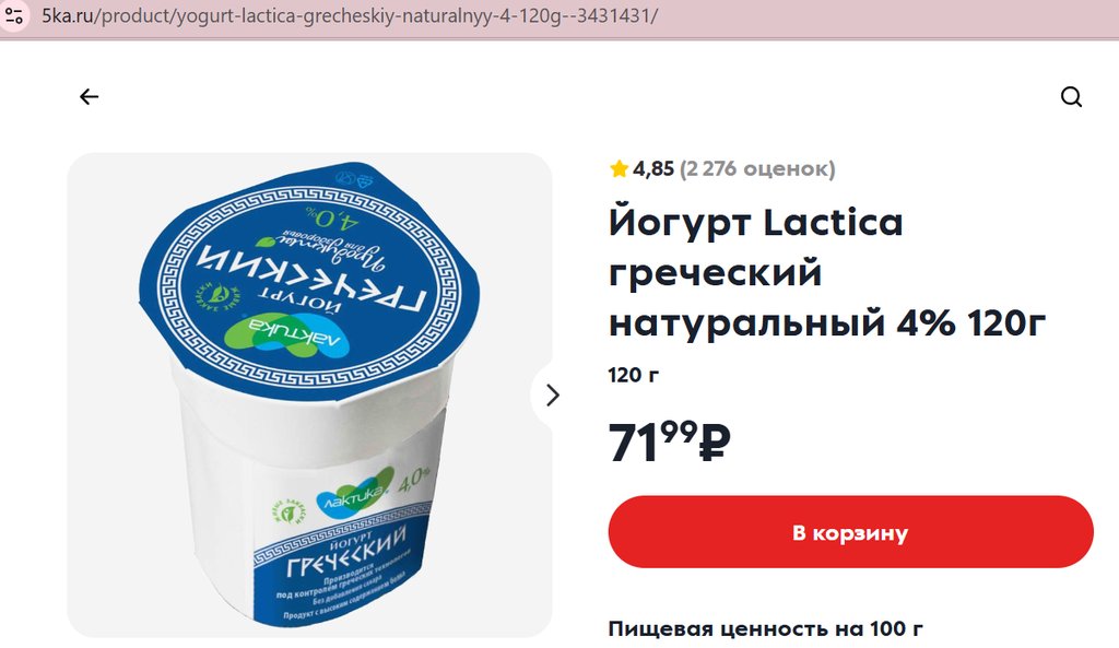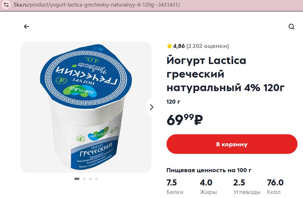 Йогурт Lactica Греческий 4% 4шт. 120г