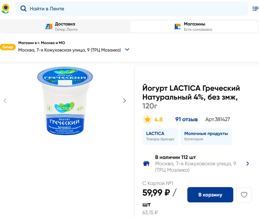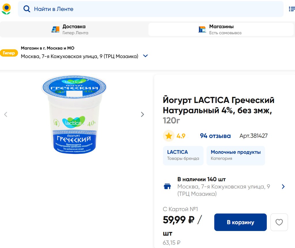 Йогурт Lactica Греческий 4% 4шт. 120г