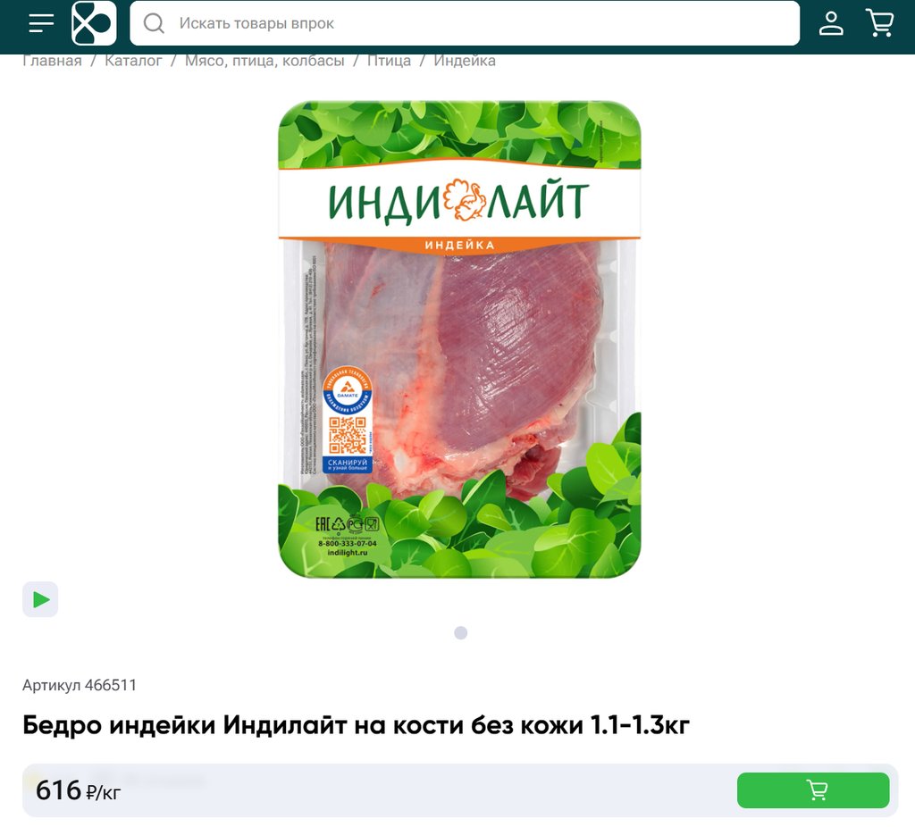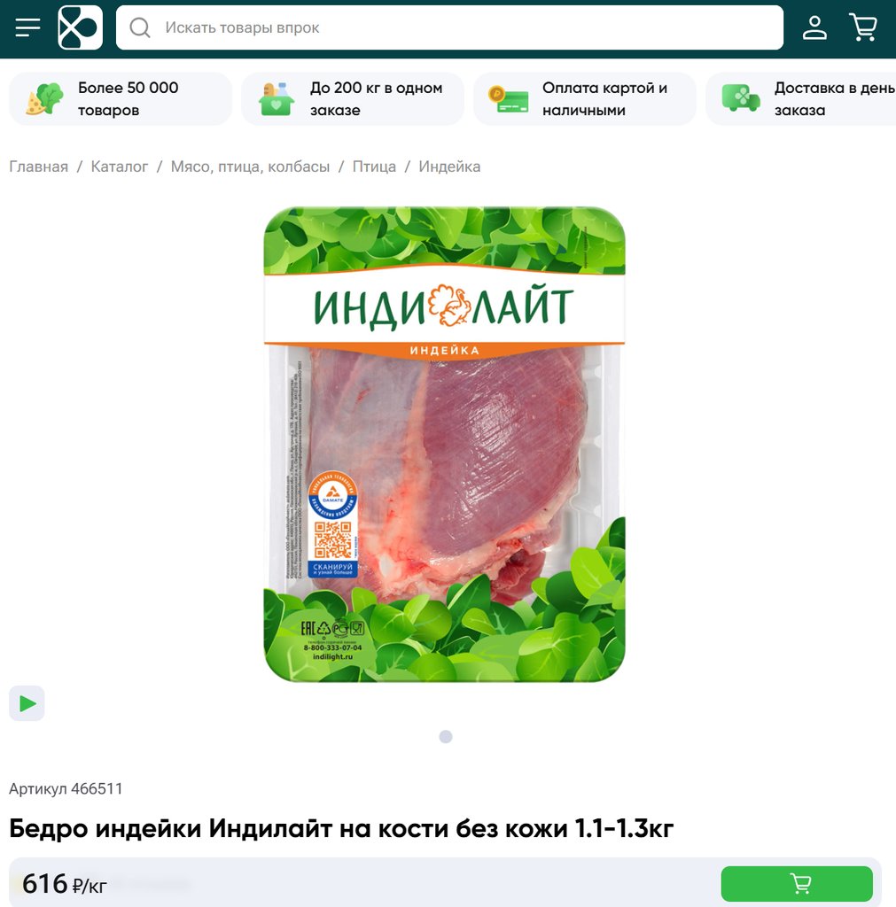 Бедро индейки Индилайт на кости без кожи 1кг.