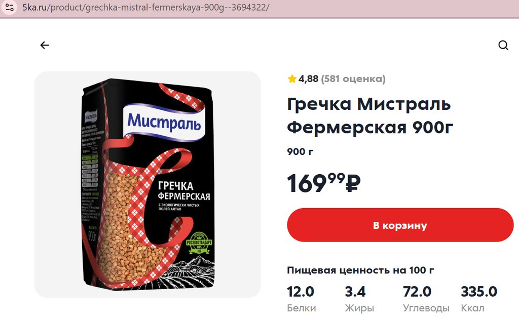 Крупа Мистраль Гречневая Фермерская 900г