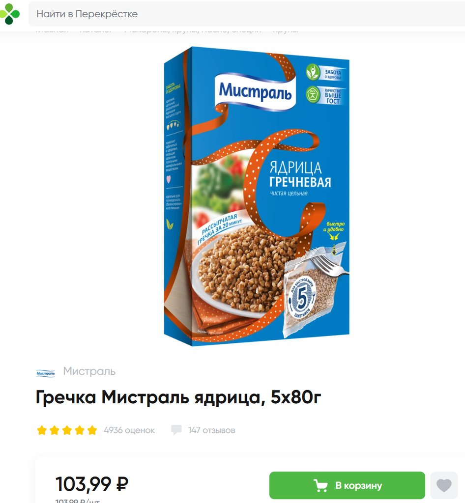 Крупа Мистраль Гречневая ядрица 5пак 80г