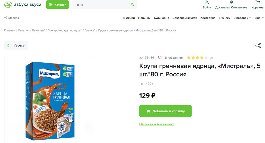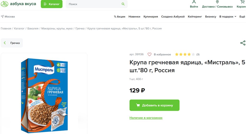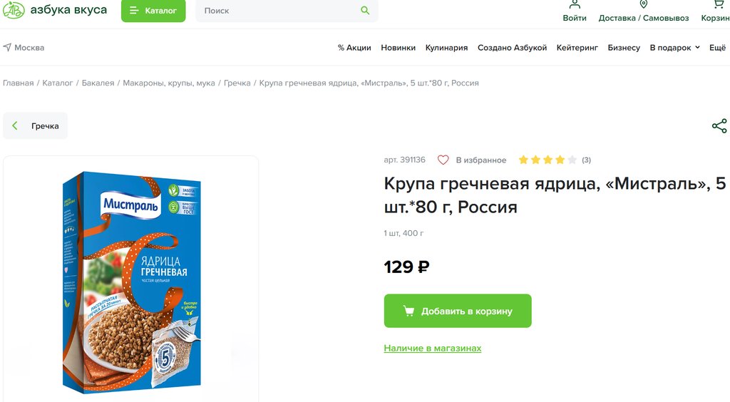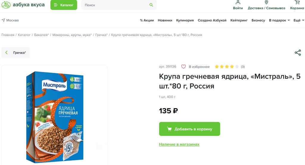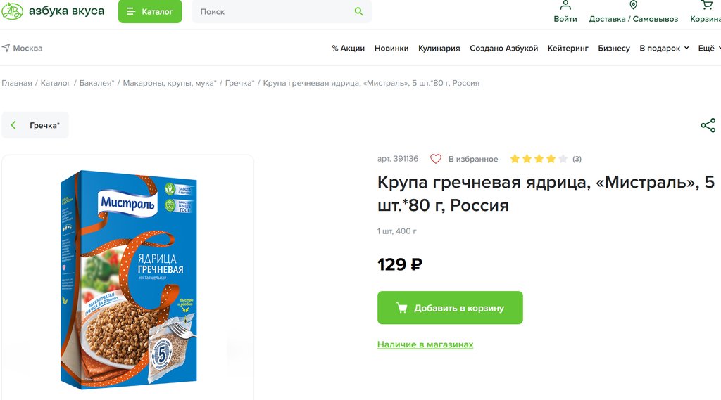 Крупа Мистраль Гречневая ядрица 5пак 80г
