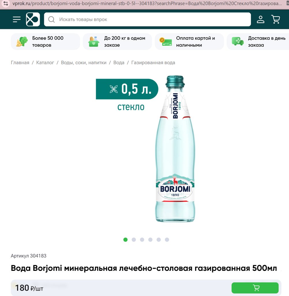 Вода Borjomi Стекло газированная 500мл