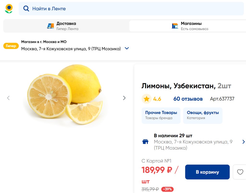 Магазин: Лента, Москва