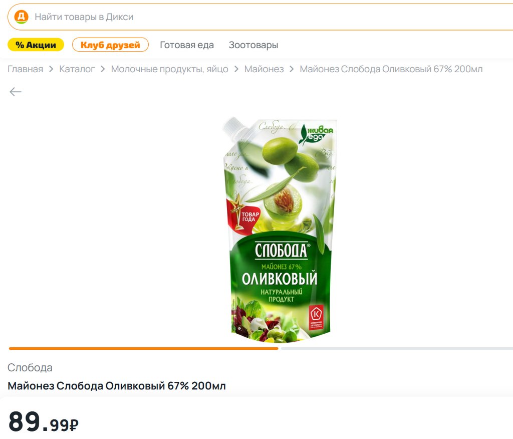 Майонез Слобода Оливковый 67% 230мл (200мл с Декабря 2025)