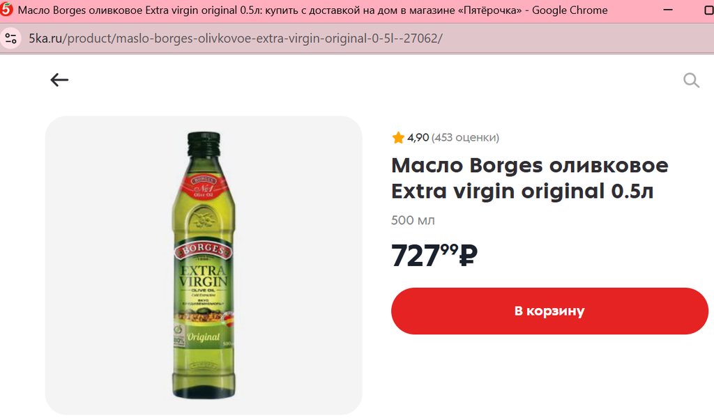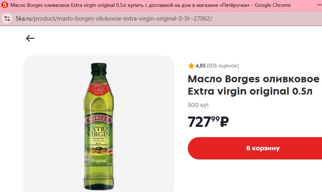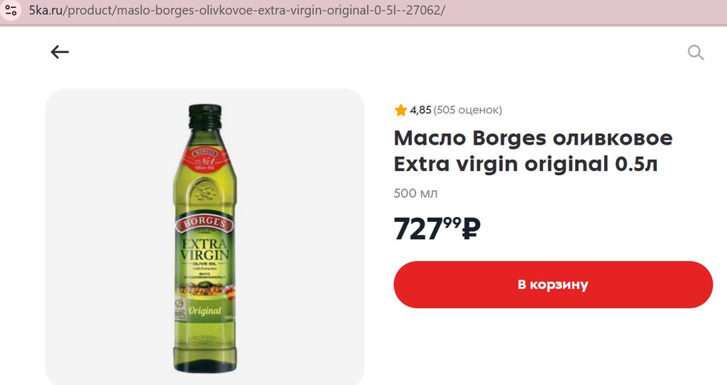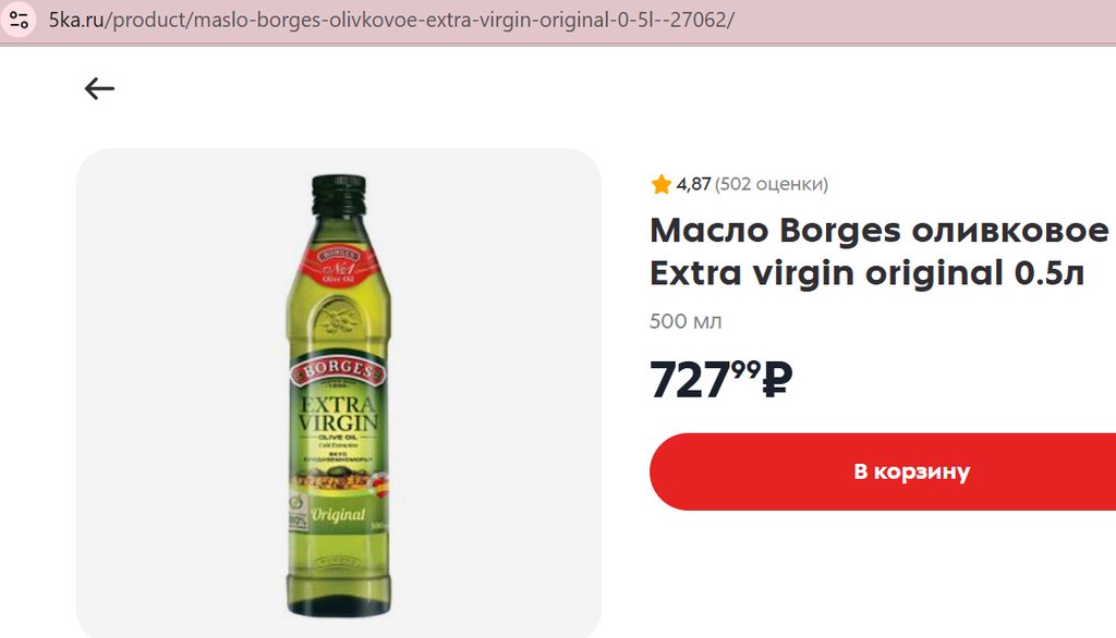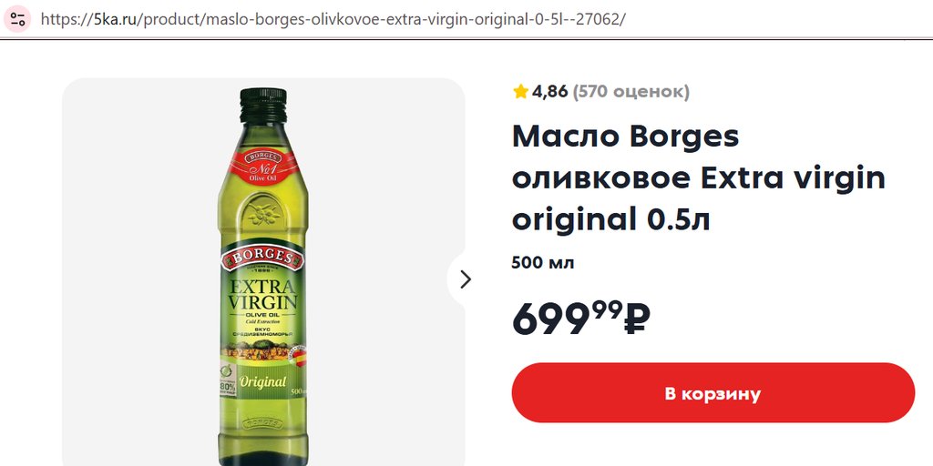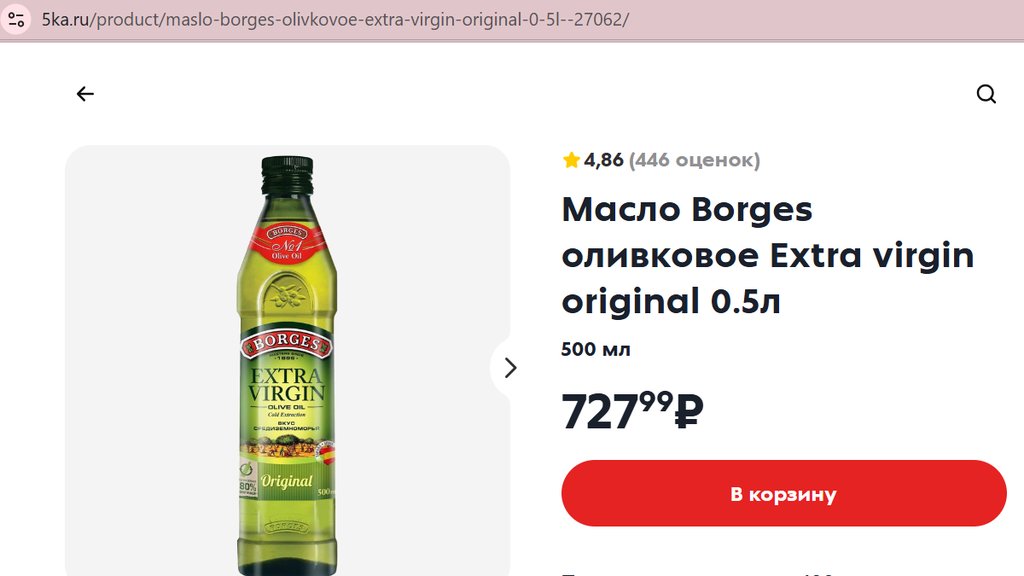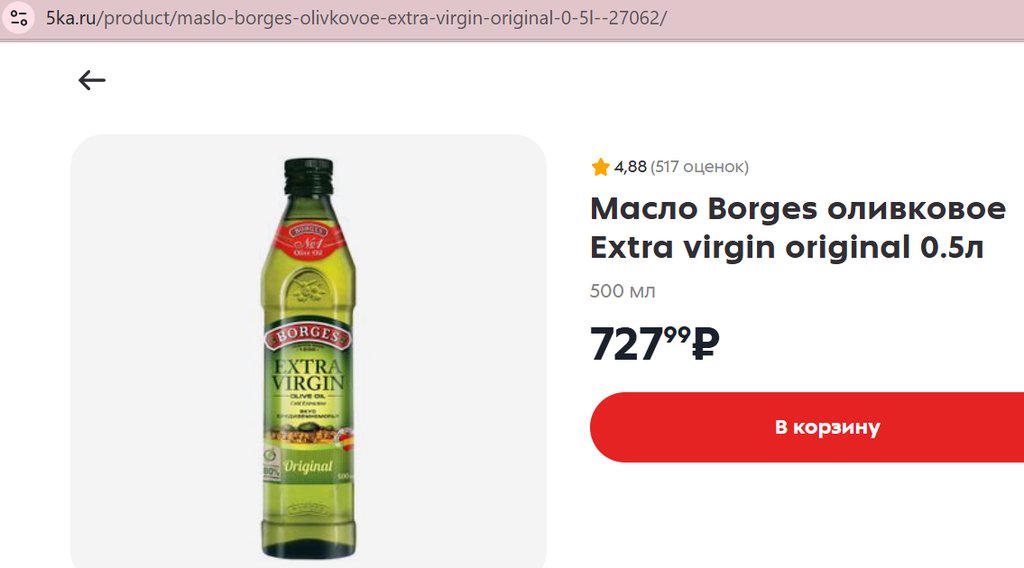 Масло оливковое Borges Extra Virgin нерафинированное 500мл