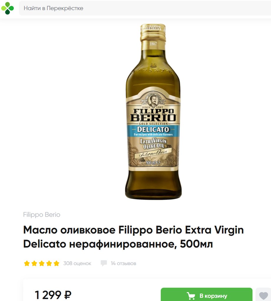 Масло оливковое Filippo Berio Extra Virgin Delicato 500мл