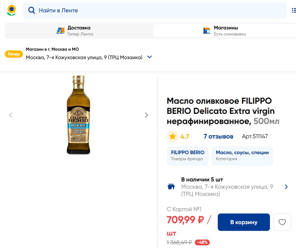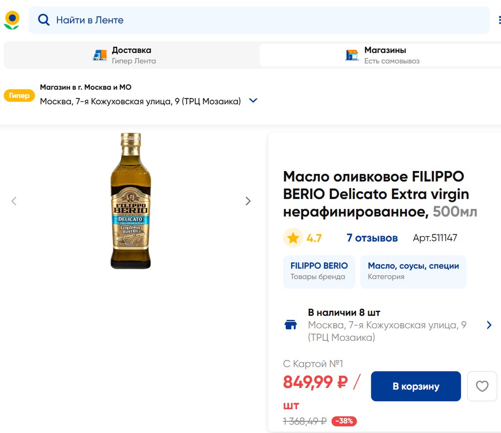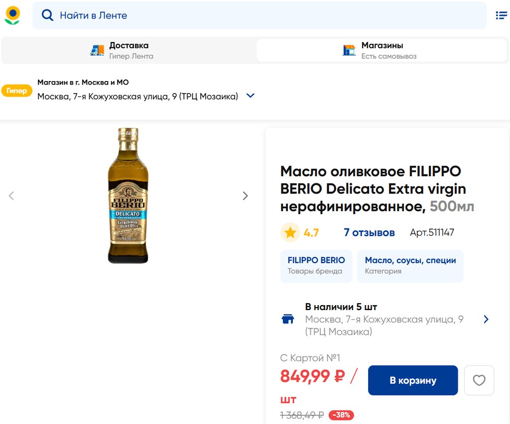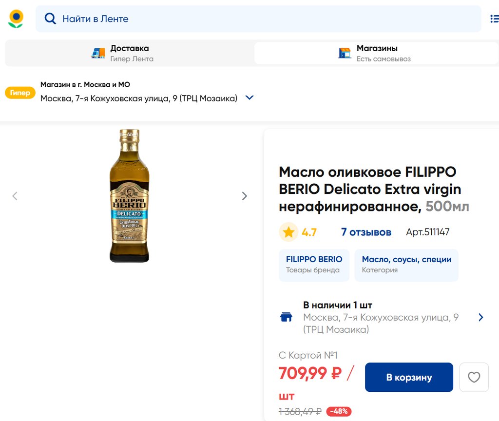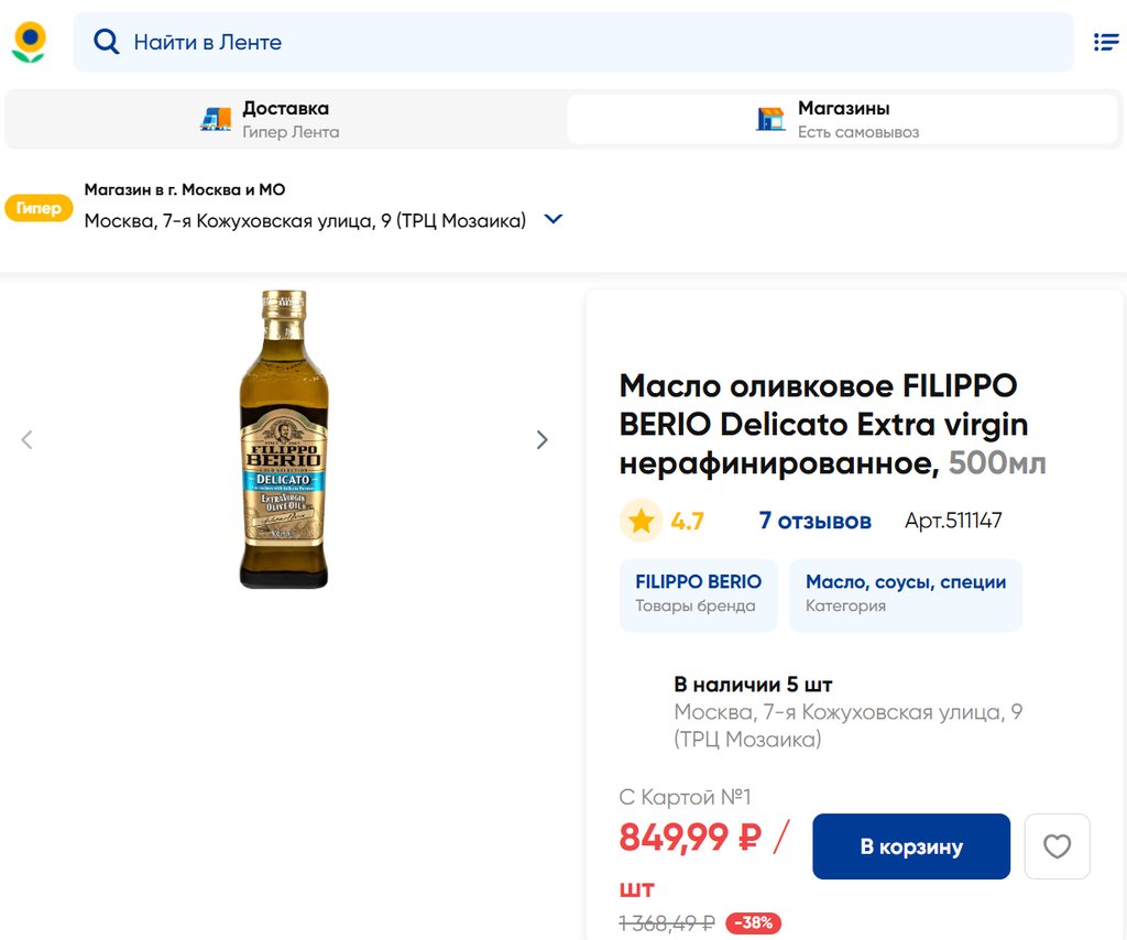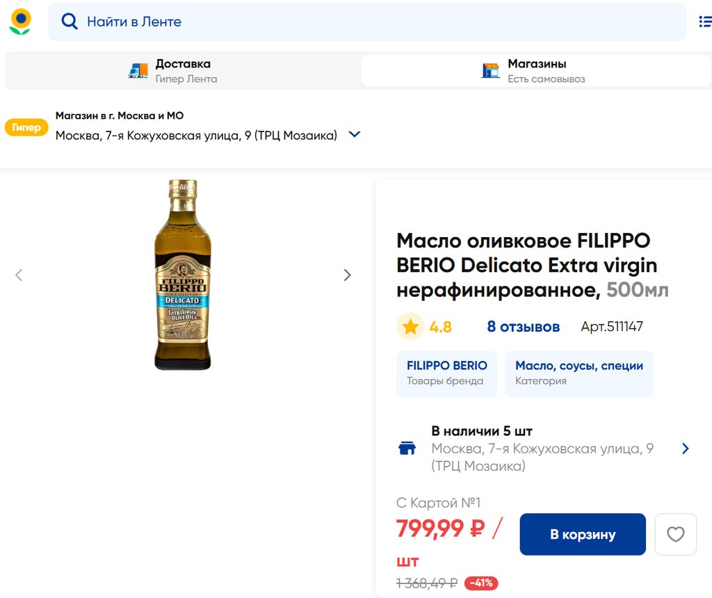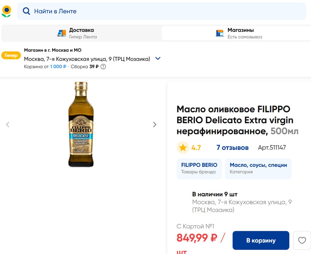Масло оливковое Filippo Berio Extra Virgin Delicato 500мл