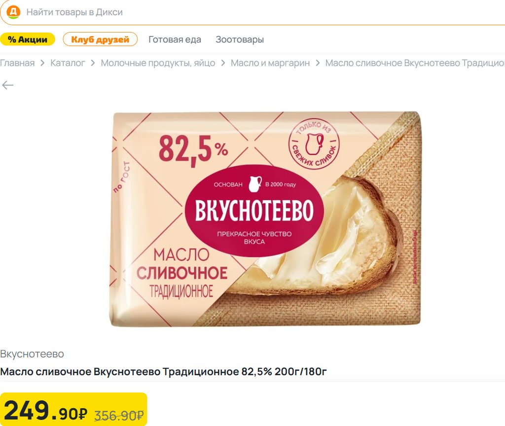 Масло сливочное Вкуснотеево Традиционное 82.5%, 200г
