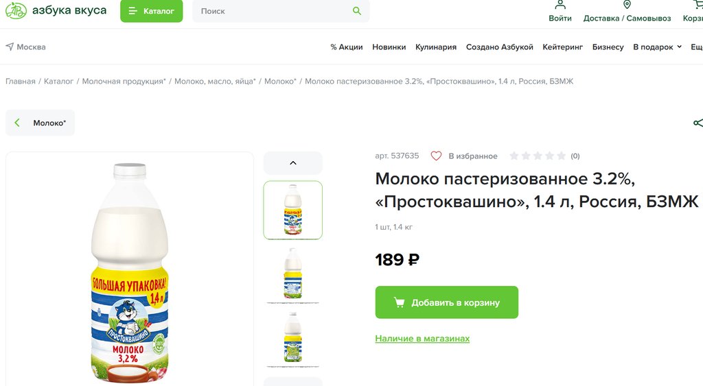 Молоко Простоквашино питьевое 3.2%, 1.4л