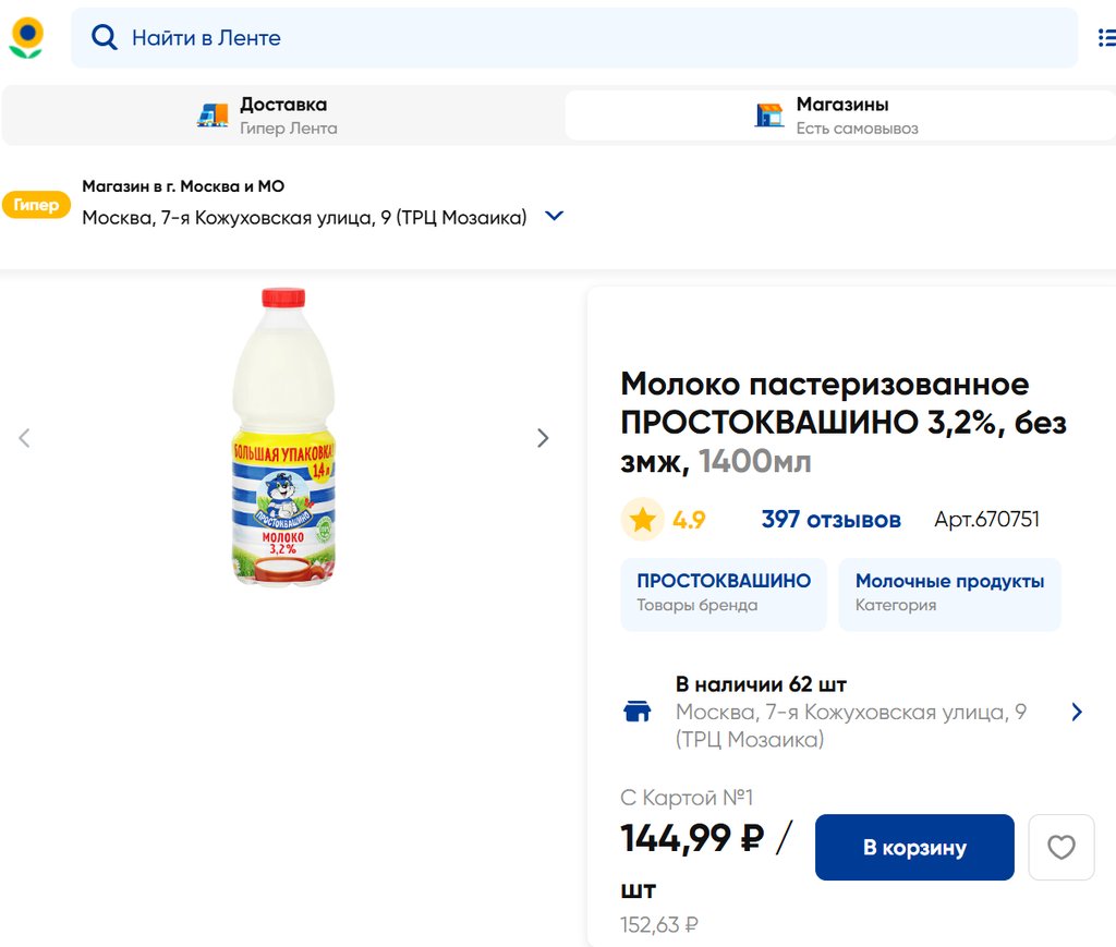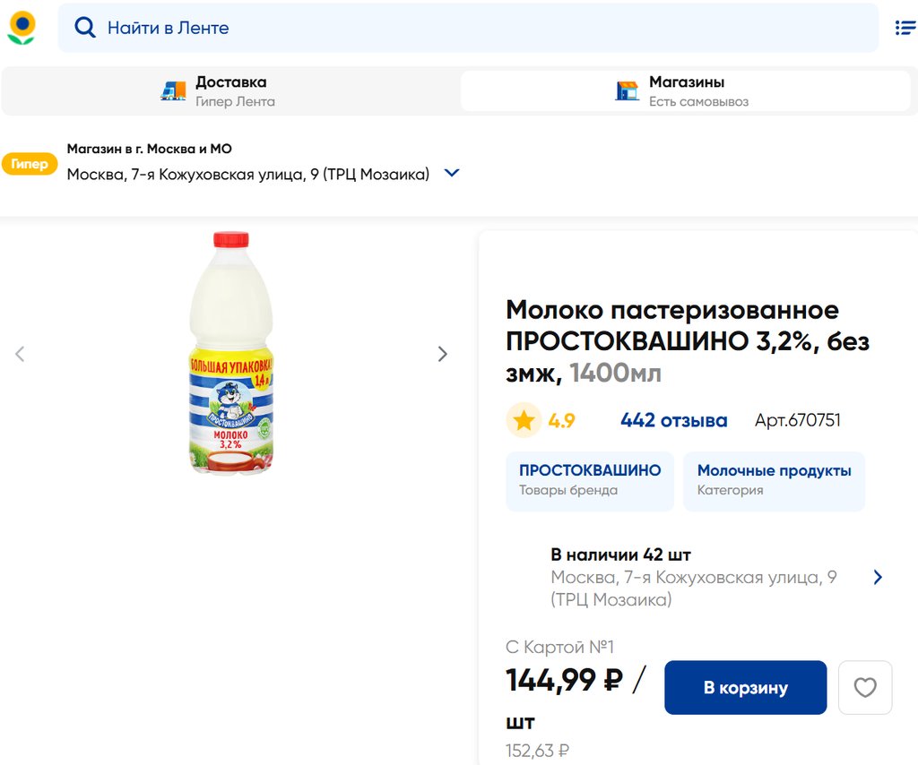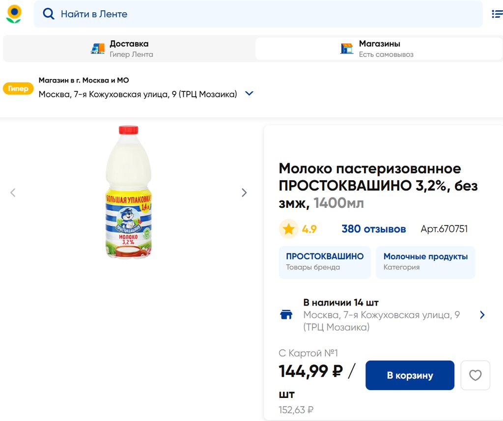 Молоко Простоквашино питьевое 3.2%, 1.4л