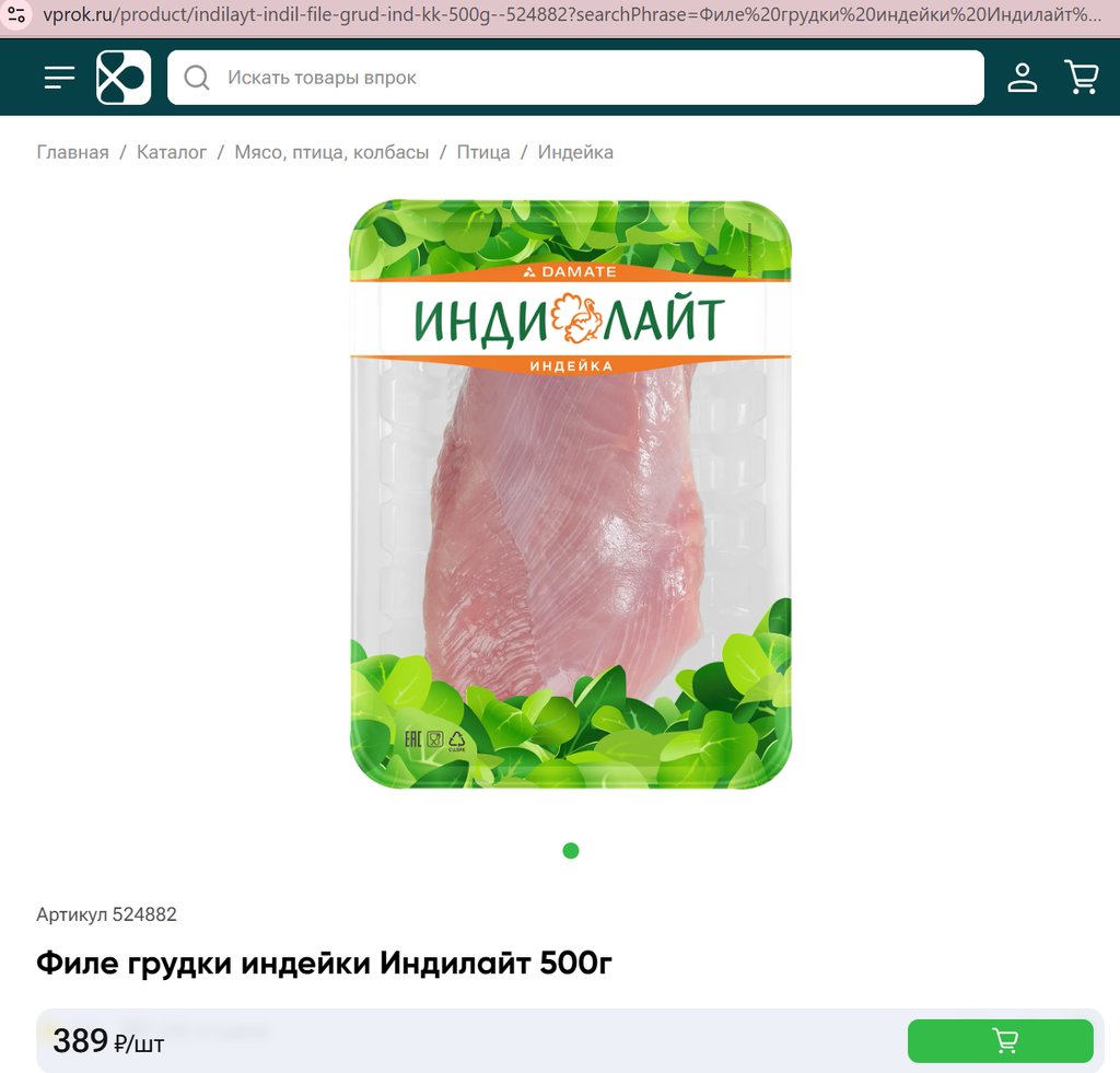 Филе грудки индейки Индилайт 500г