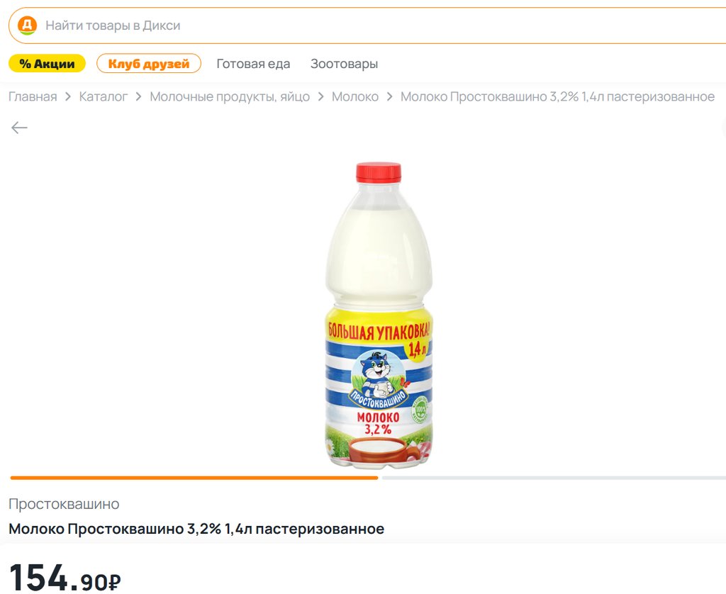 Молоко Простоквашино питьевое 3.2%, 1.4л