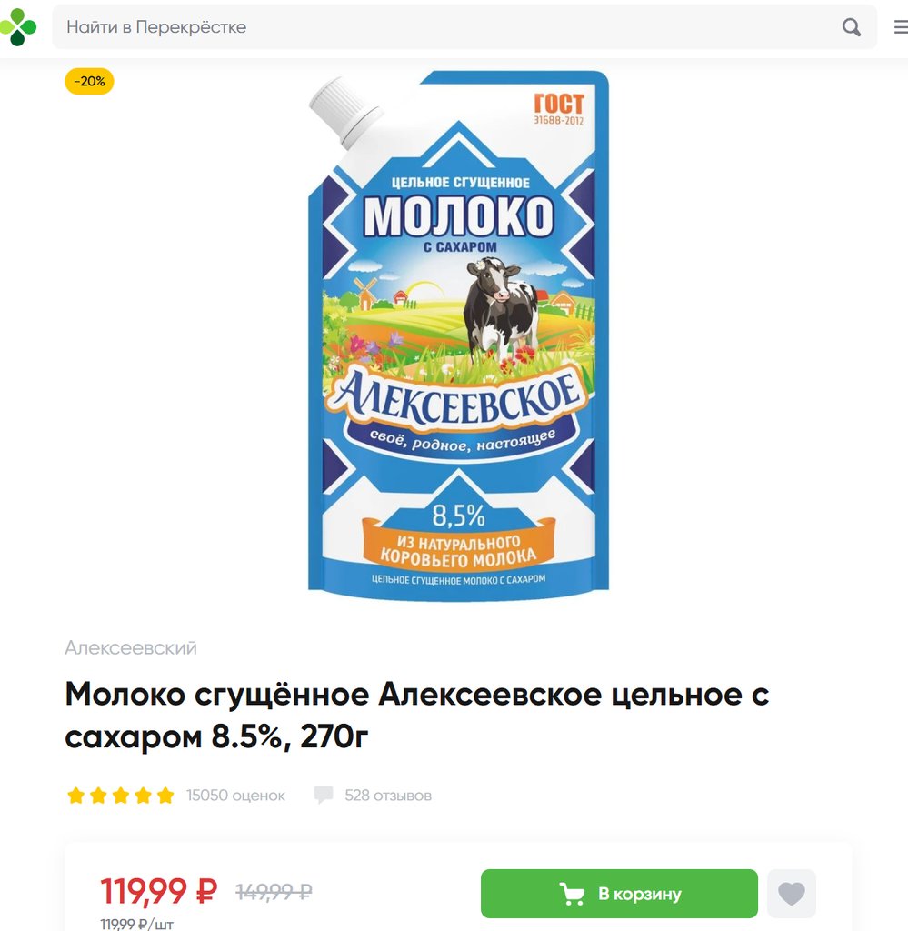 Молоко сгущенное Алексеевское цельное с сахаром 8.5% 270г
