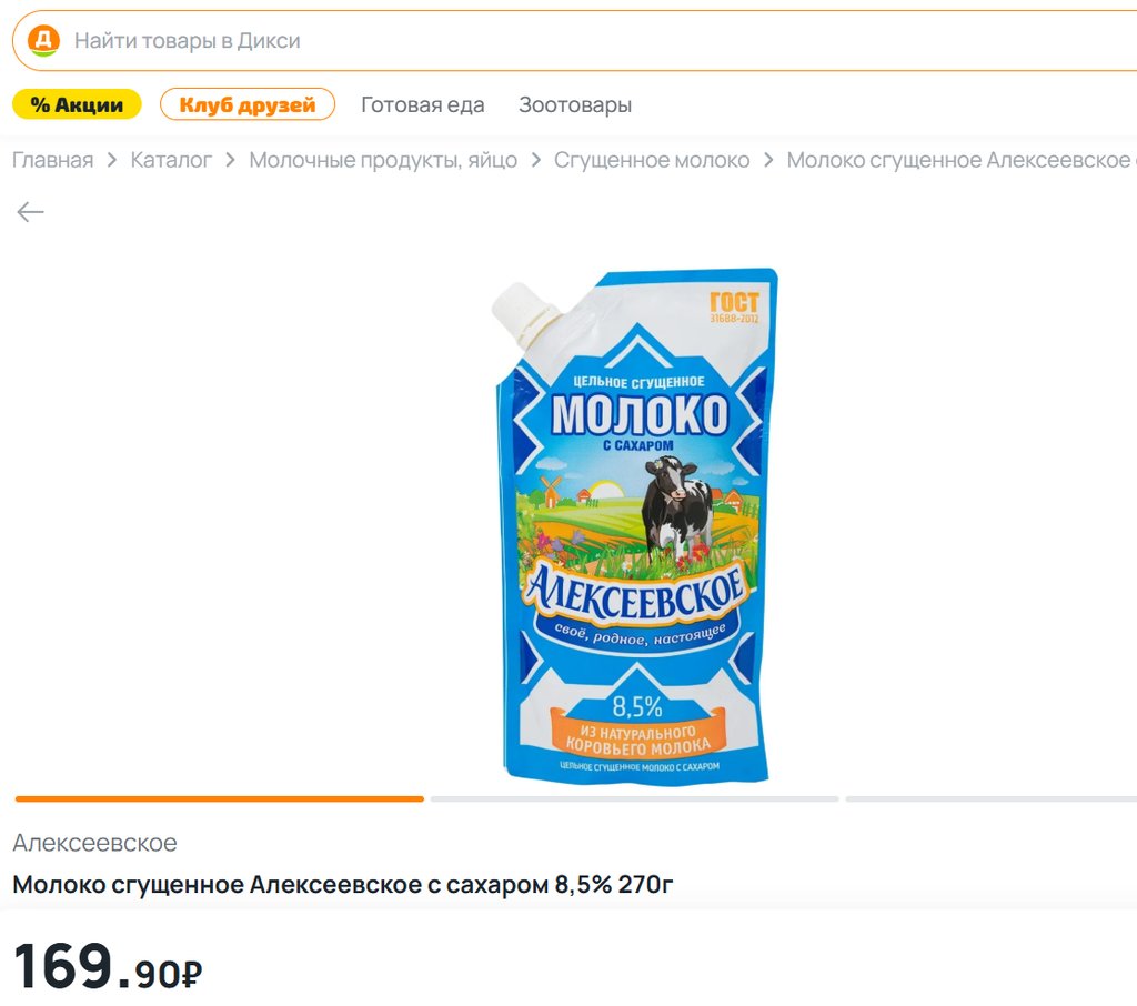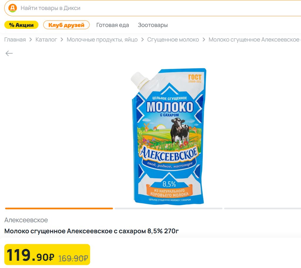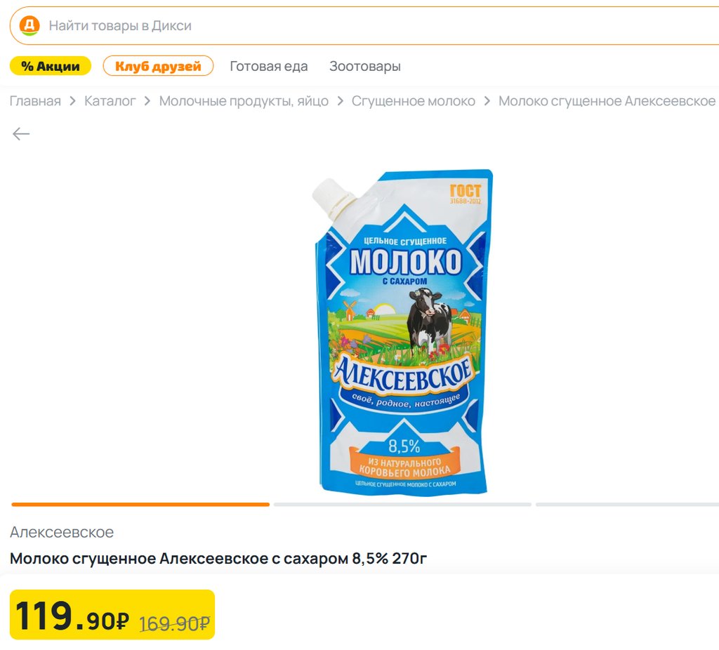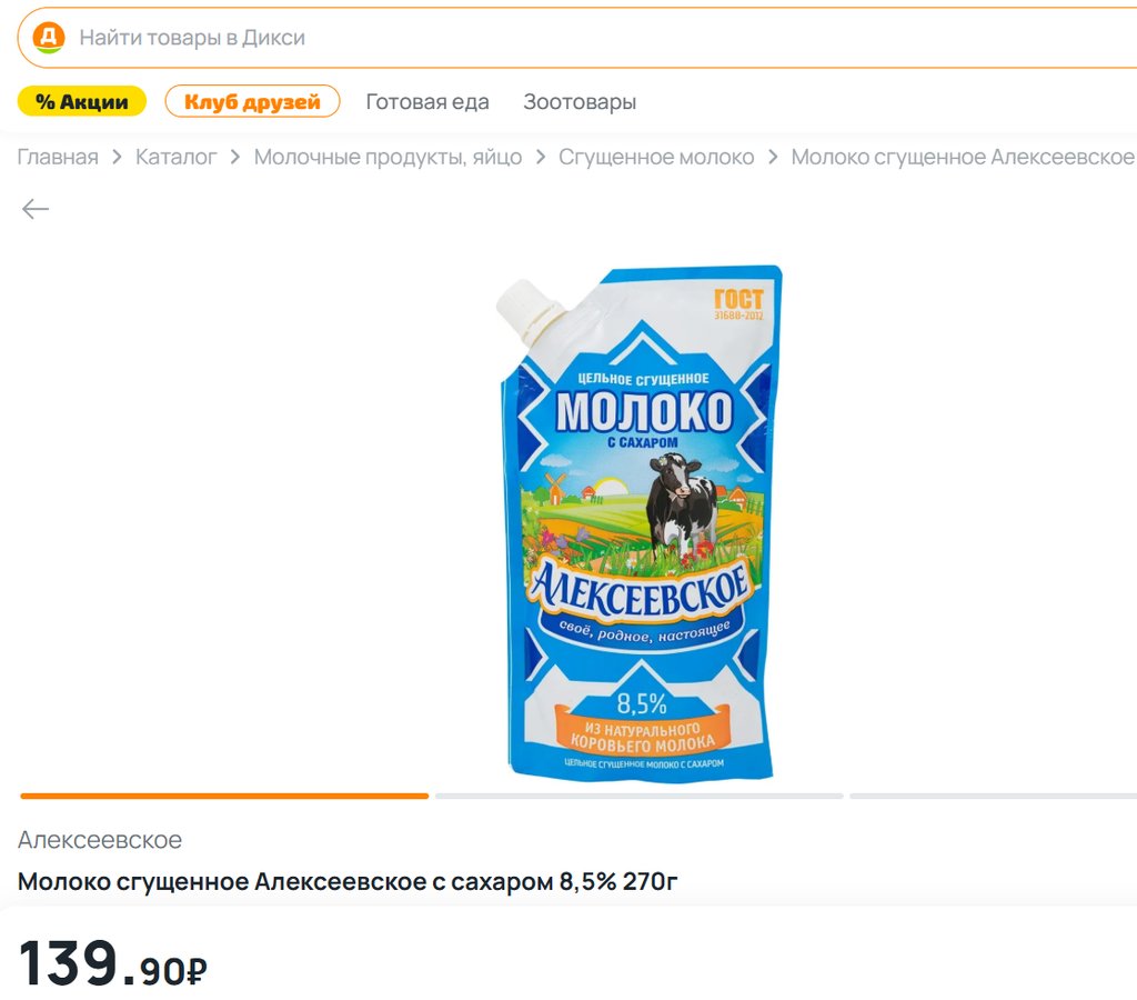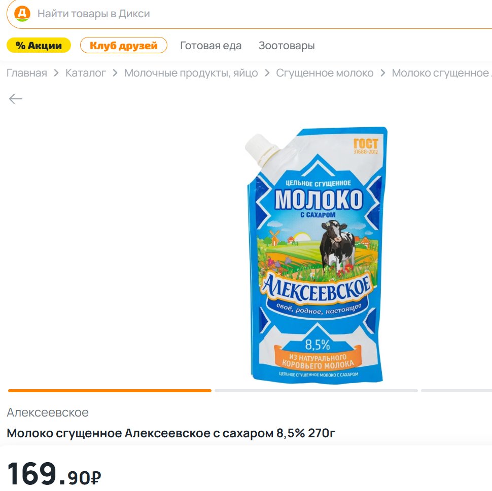 Молоко сгущенное Алексеевское цельное с сахаром 8.5% 270г