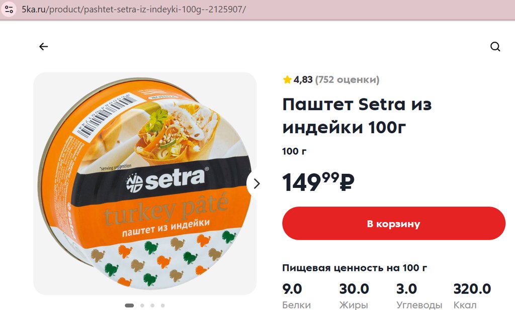 Паштет Setra из индейки 100г