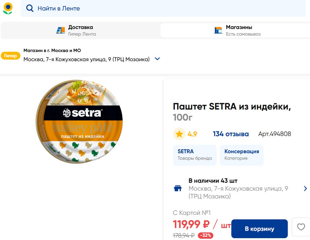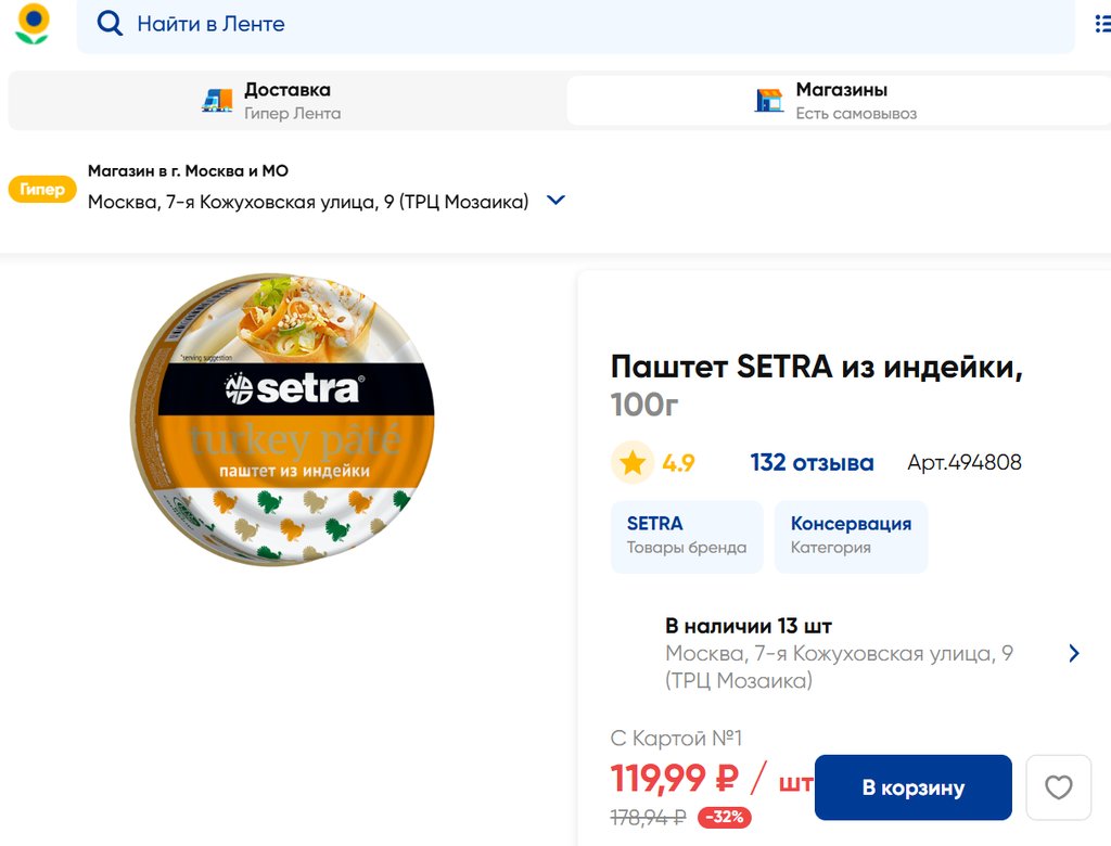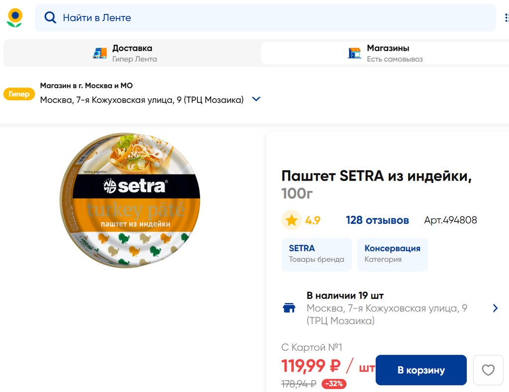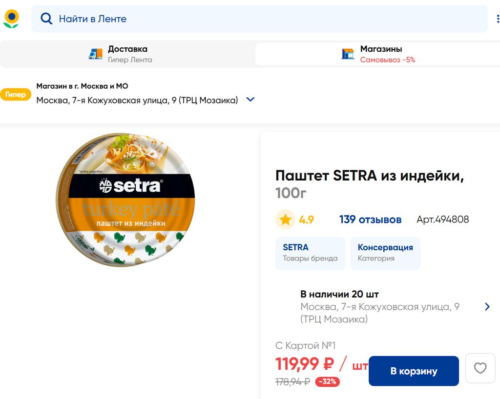 Магазин: Лента, Москва