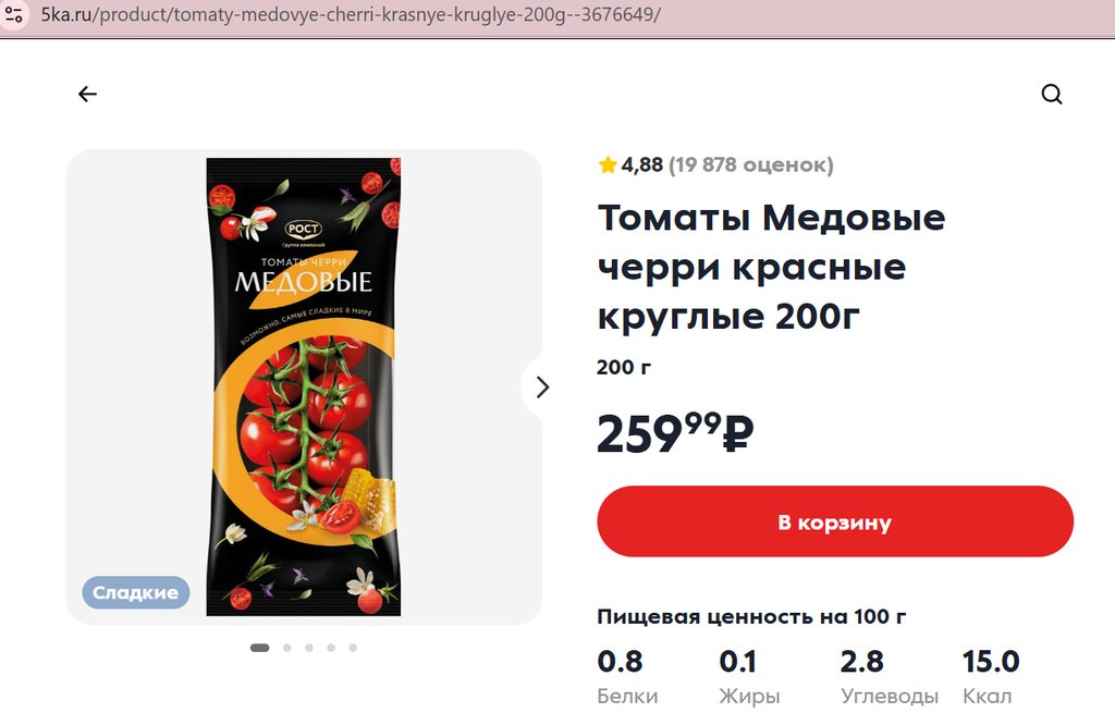 Помидоры Черри Медовые красные круглые на ветке 200г