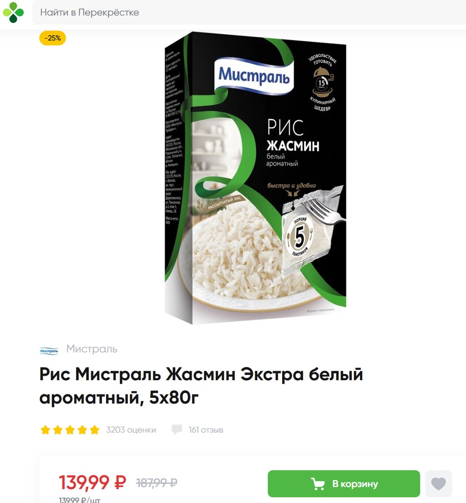 Рис Мистраль Жасмин белый ароматный 5пак 80г