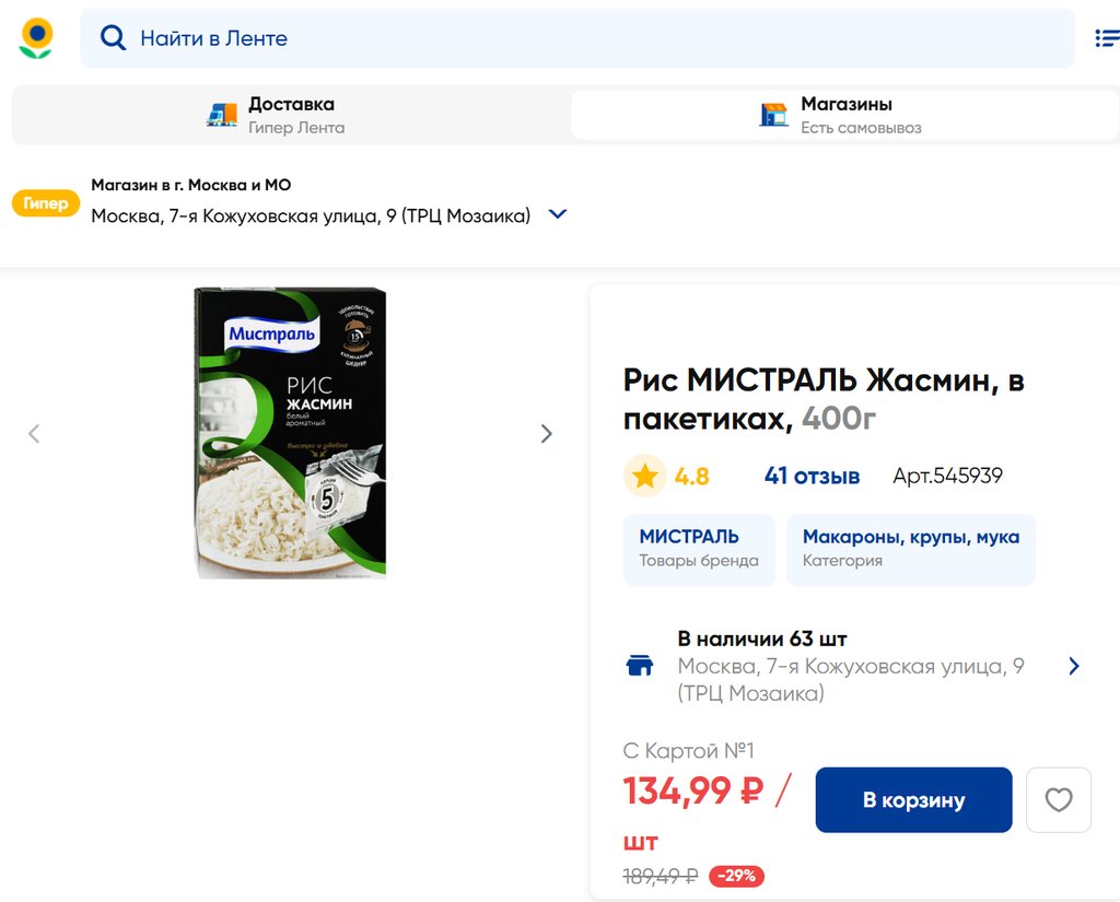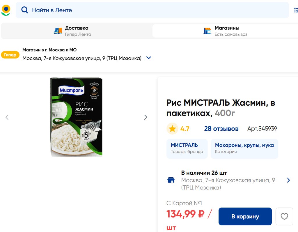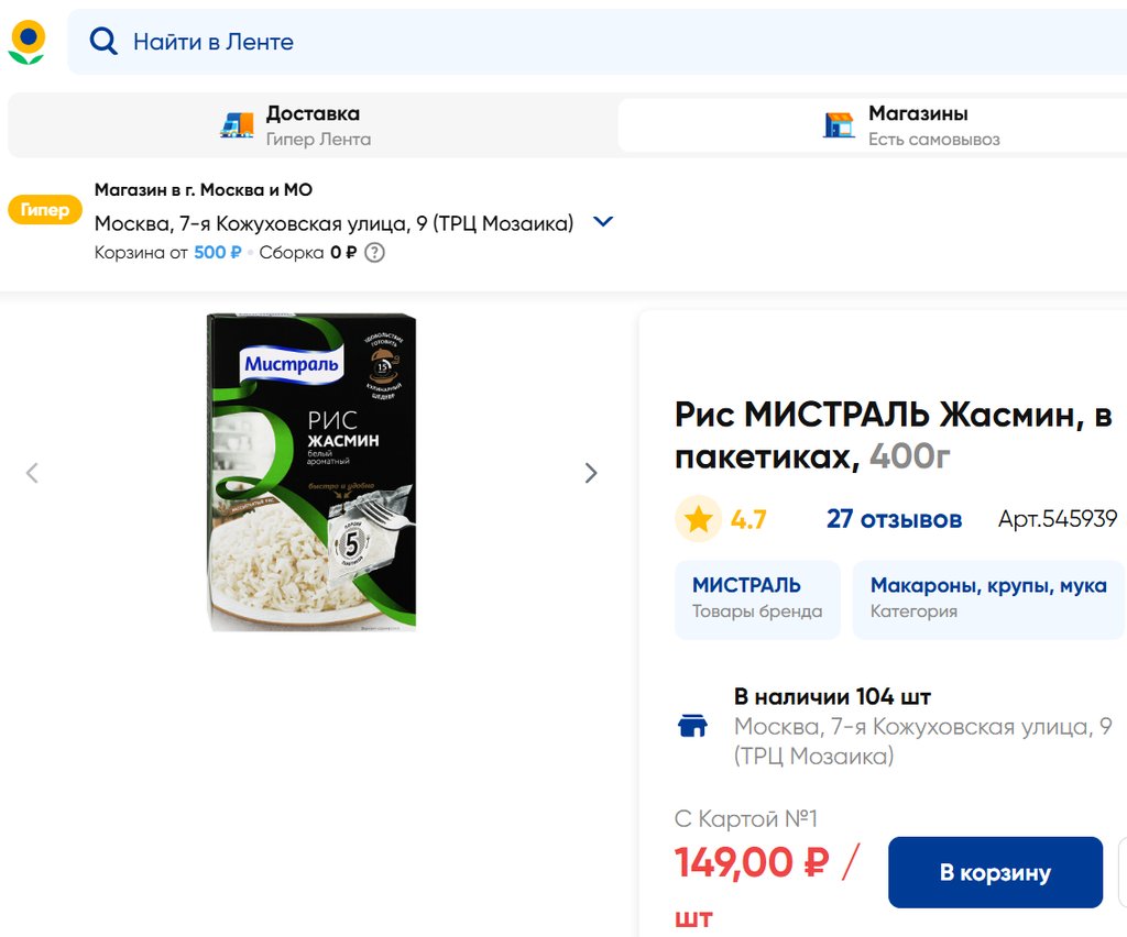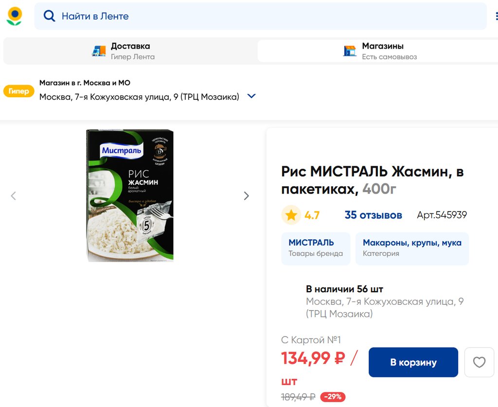 Рис Мистраль Жасмин белый ароматный 5пак 80г