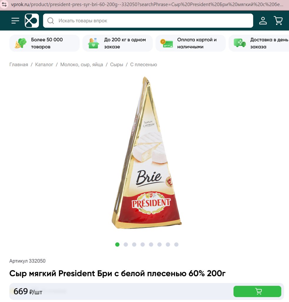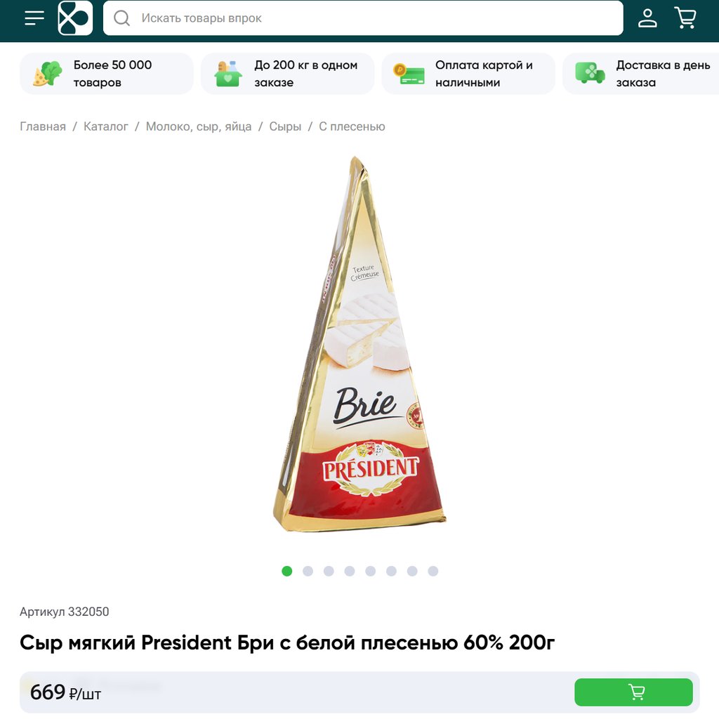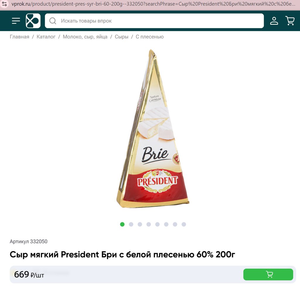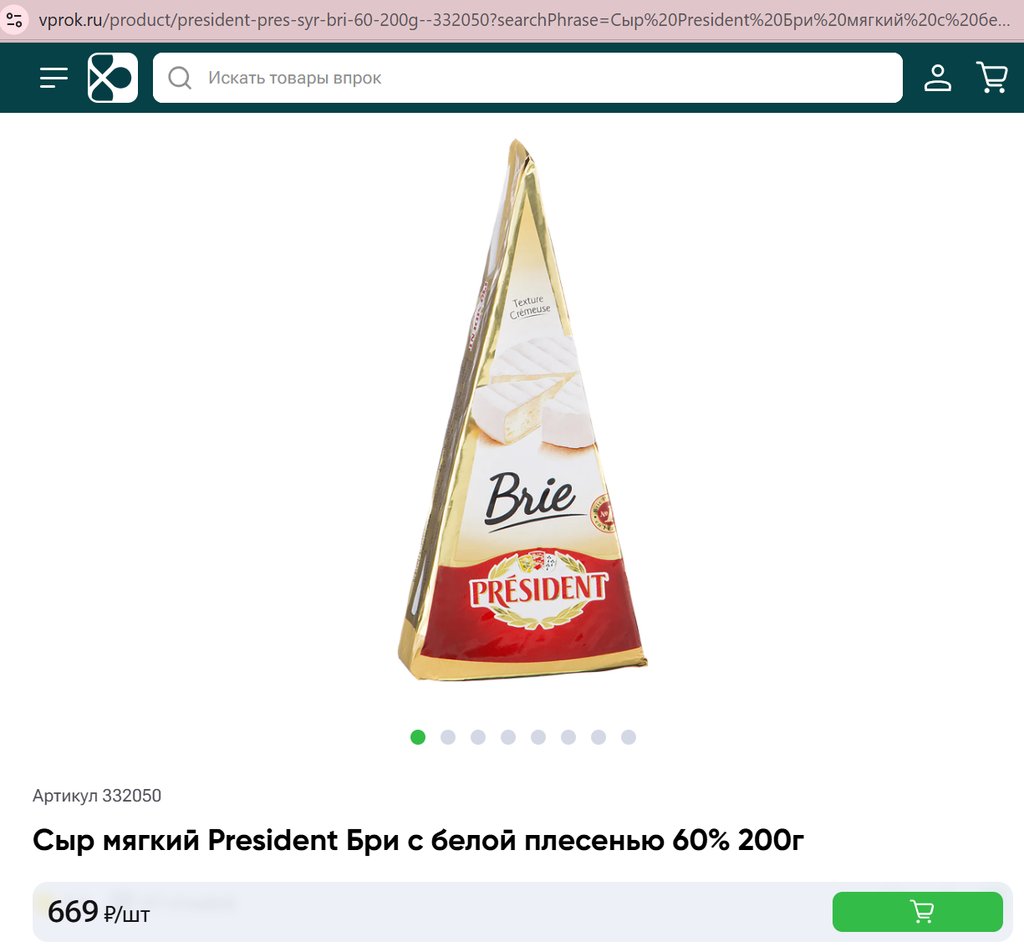 Сыр President Бри мягкий с белой плесенью 60% 200г