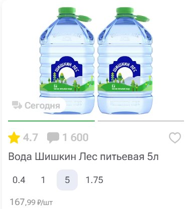 Вода Шишкин Лес питьевая 5л