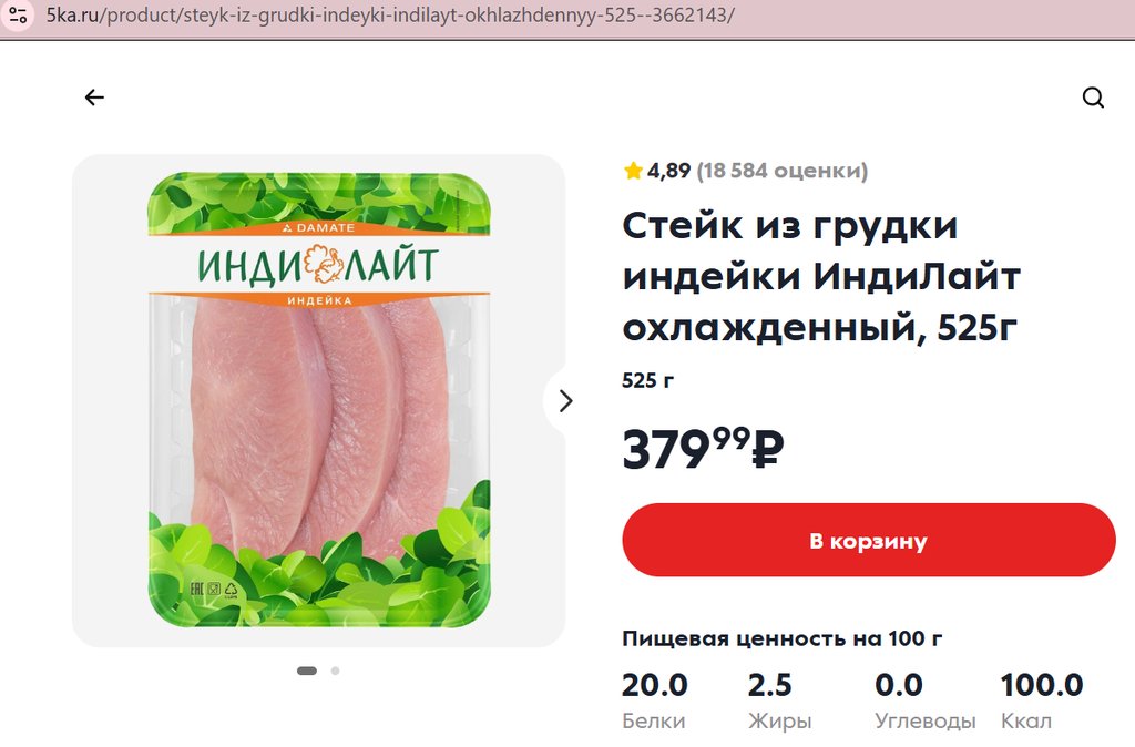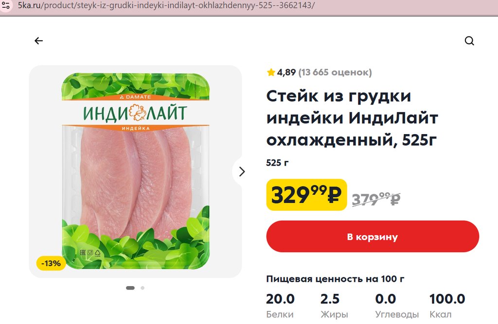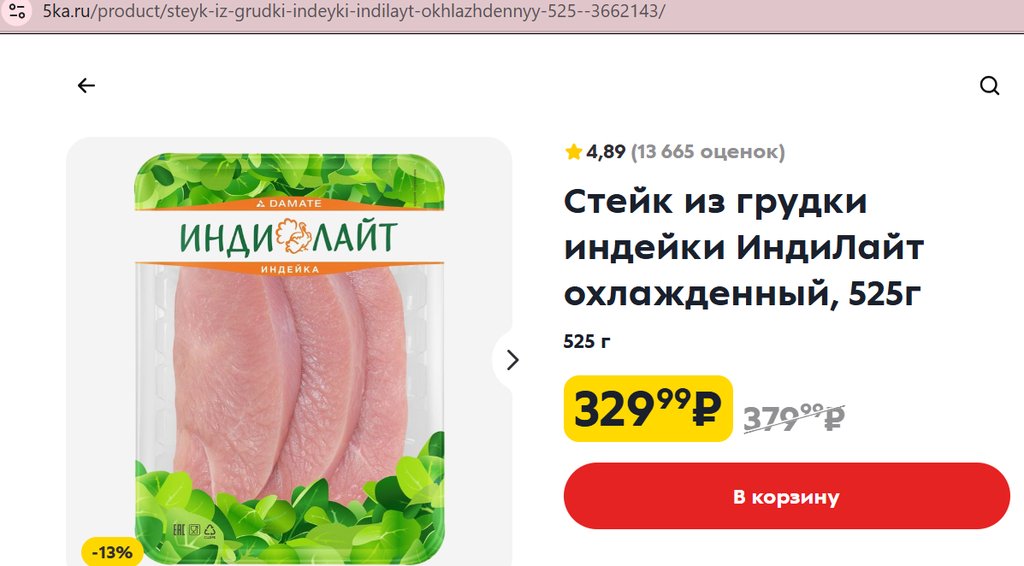 Стейк из грудки индейки Индилайт 525г