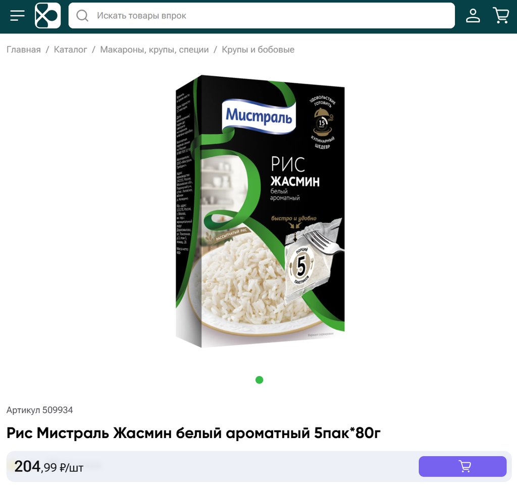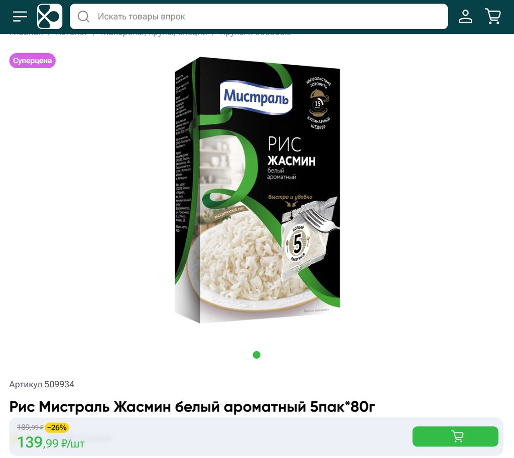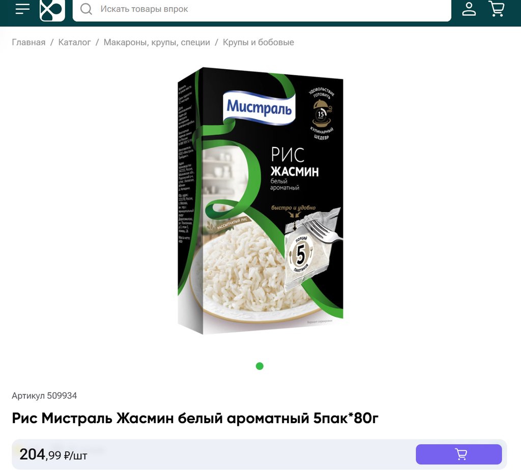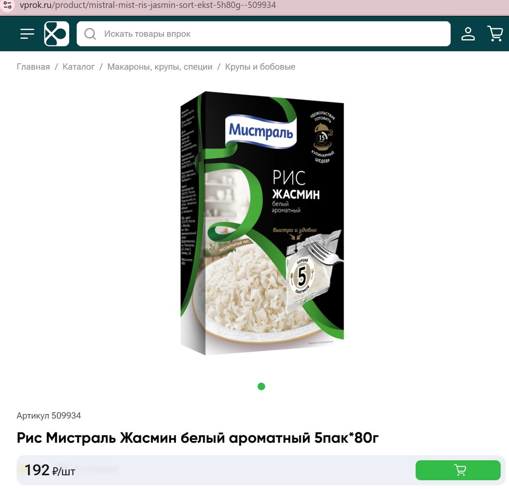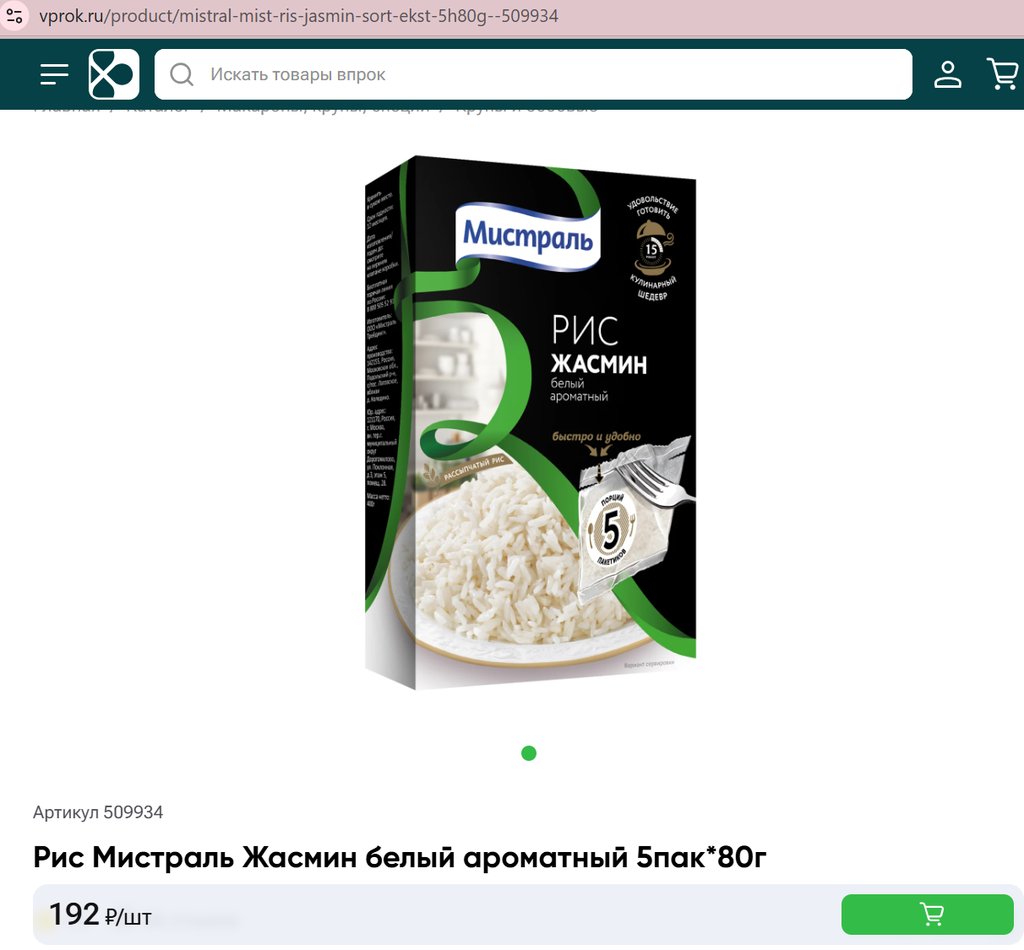 Рис Мистраль Жасмин белый ароматный 5пак 80г