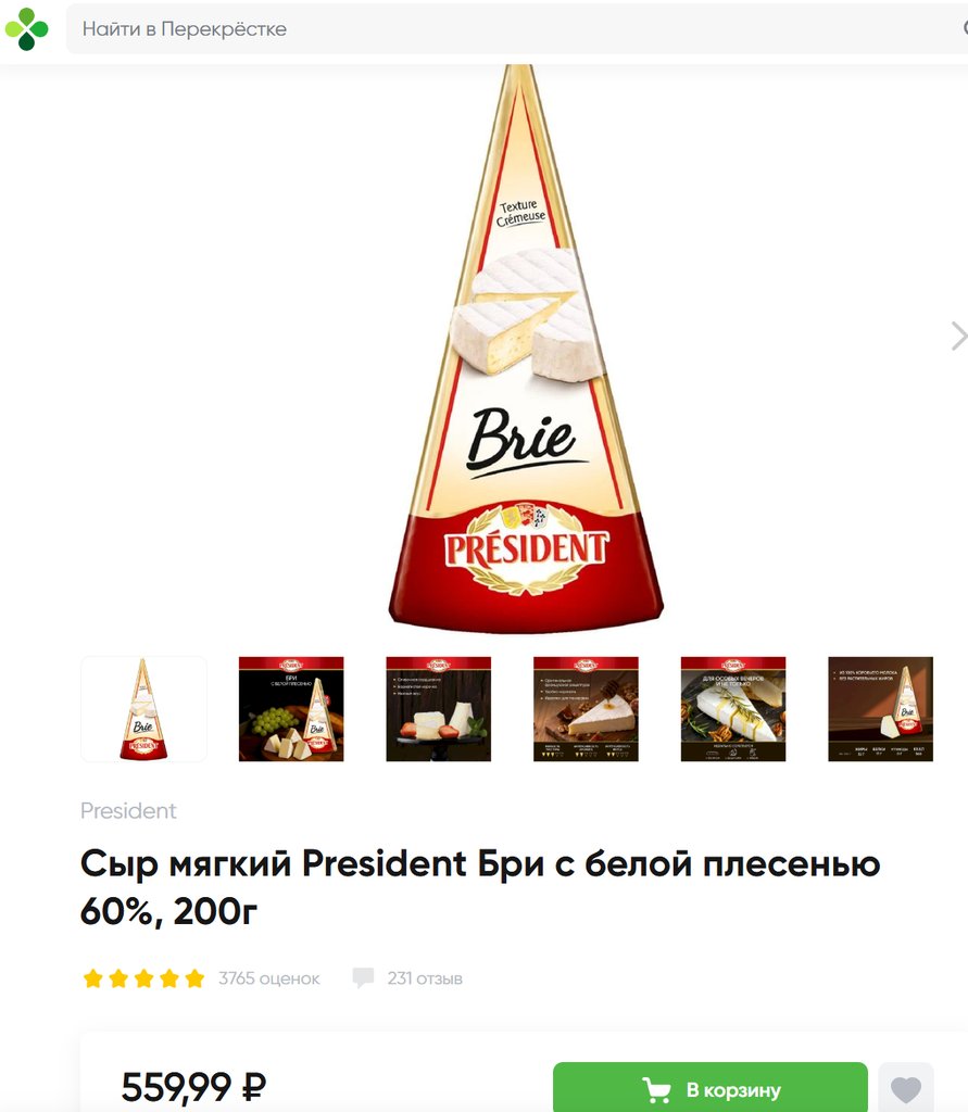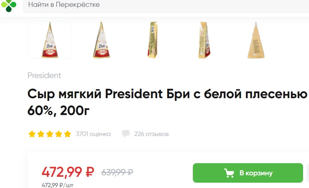 Сыр President Бри мягкий с белой плесенью 60% 200г