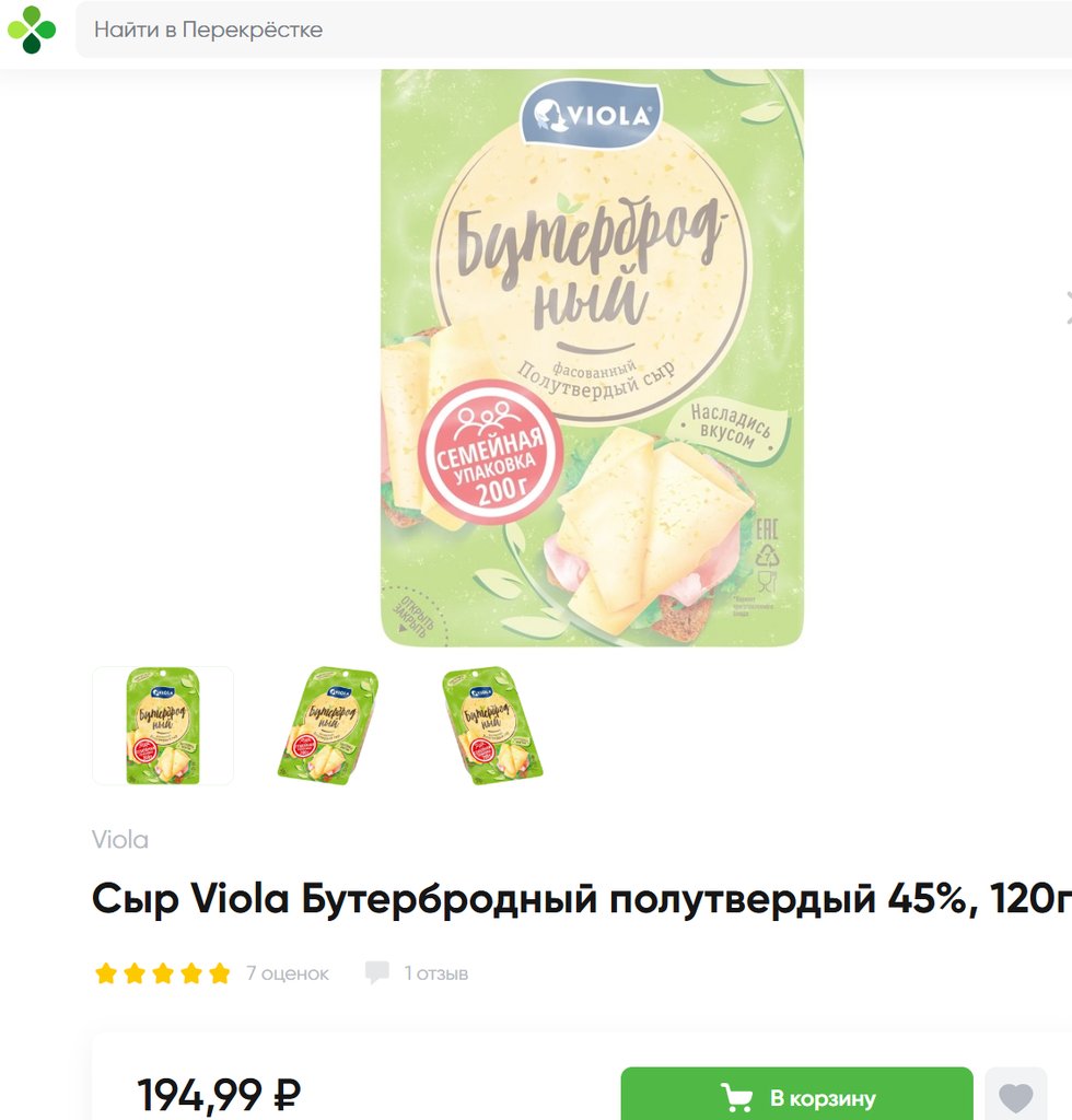 Сыр Viola полутвердый Бутербродный нарезка 45% 120г