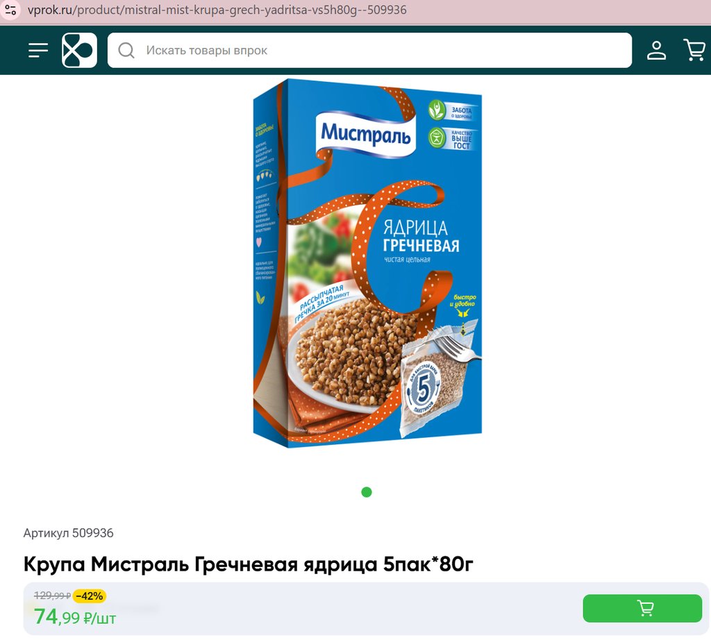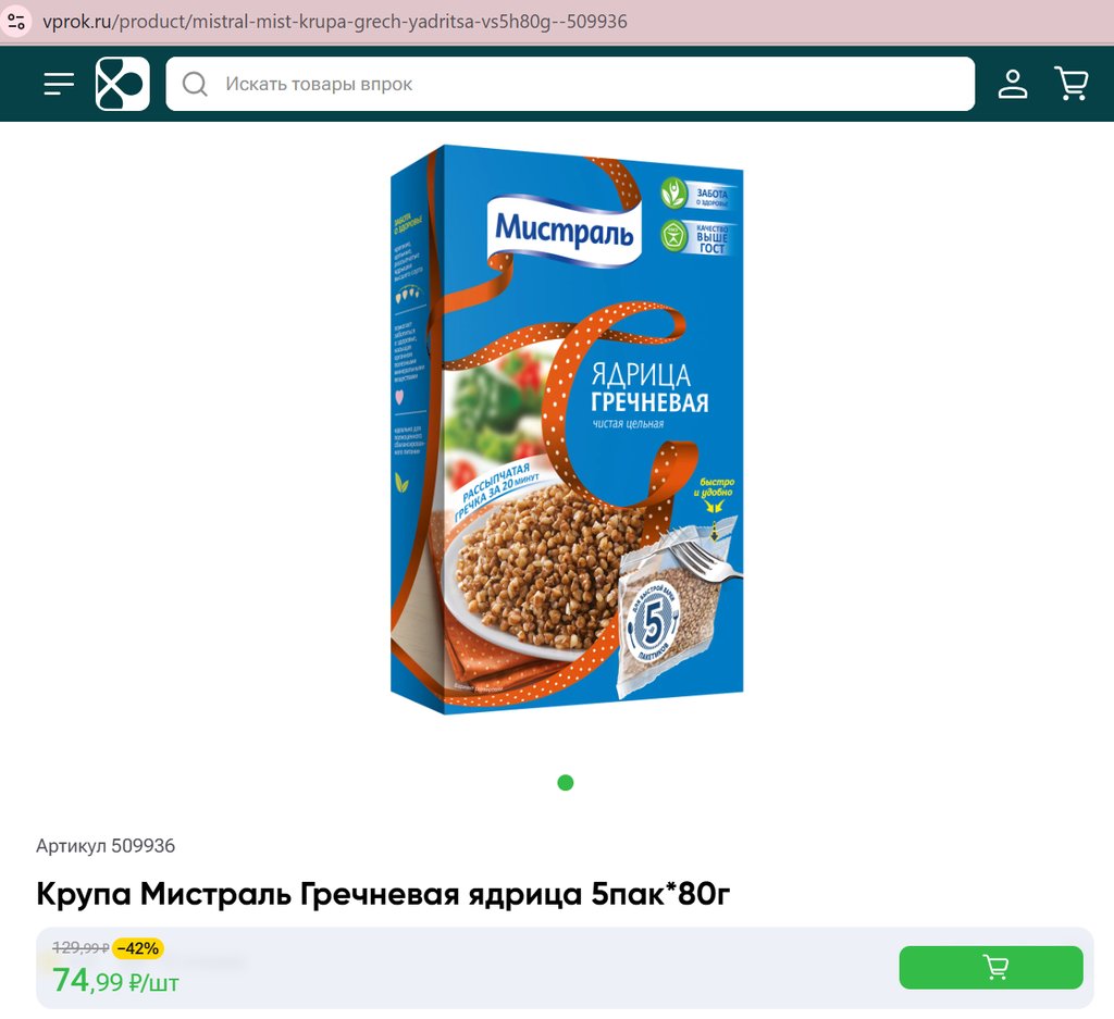 Крупа Мистраль Гречневая ядрица 5пак 80г