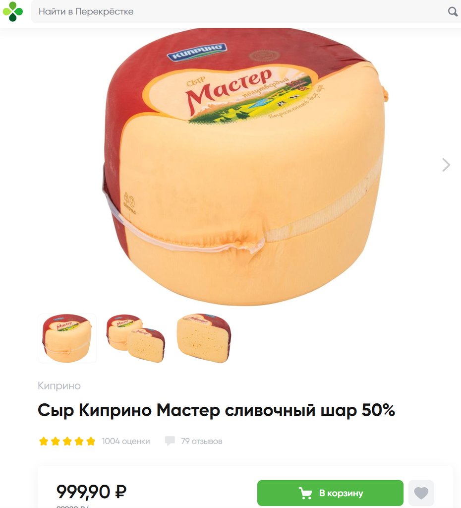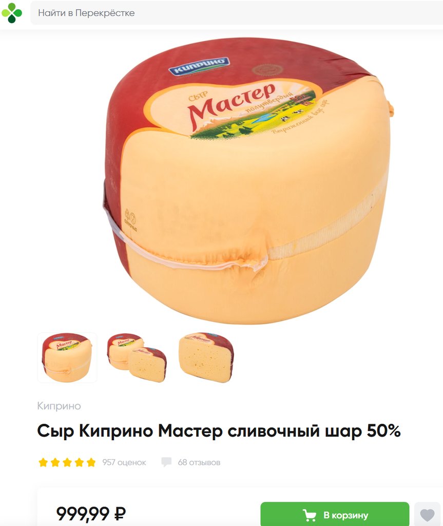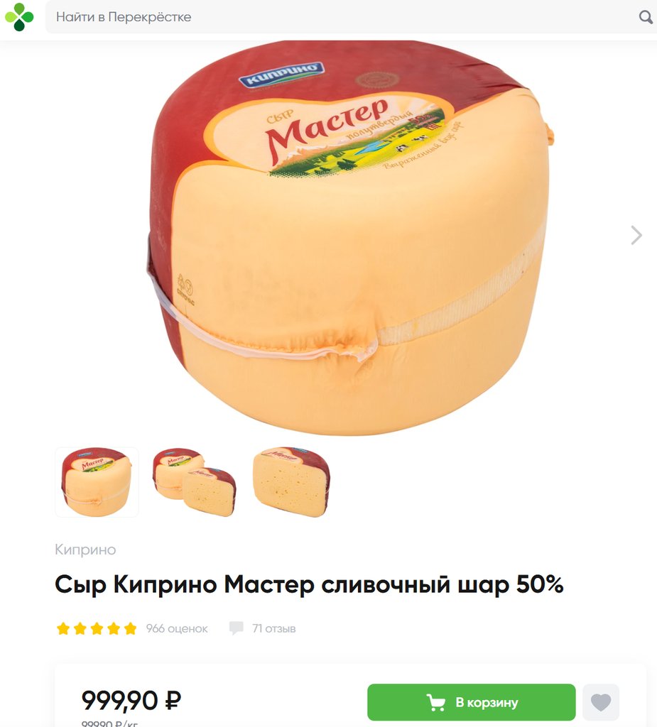 Сыр Киприно Мастер сливочный полутвердый 50% 1кг