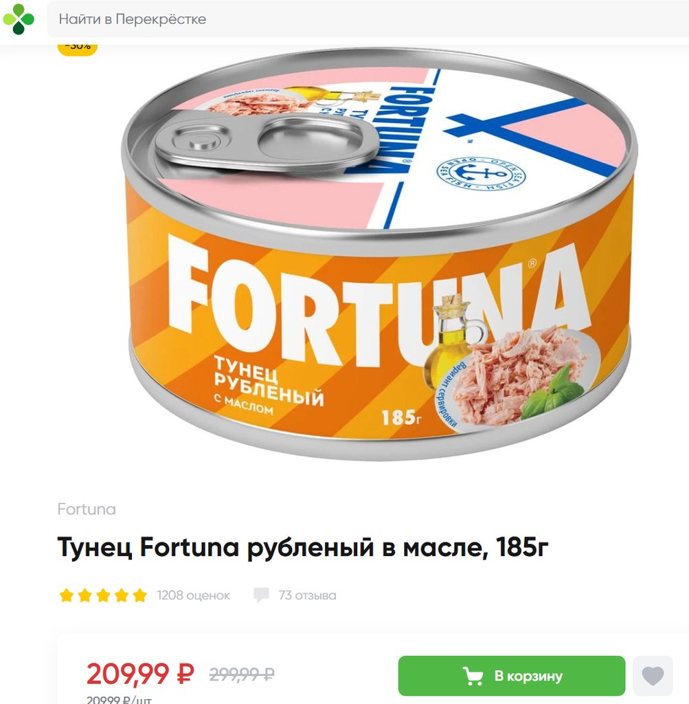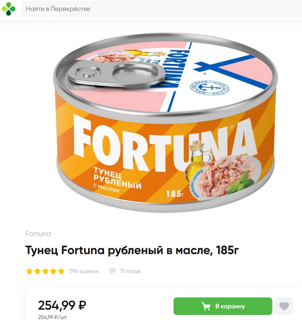 Тунец Fortuna рубленый с маслом 185г