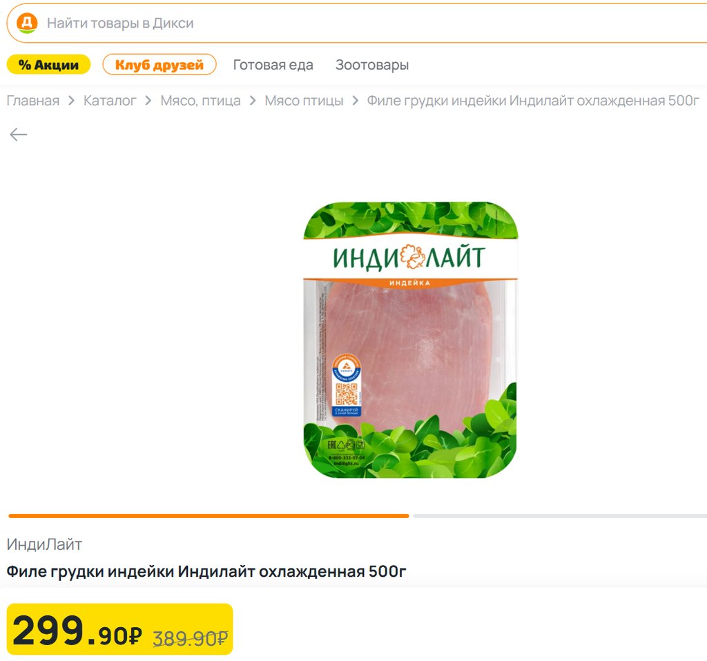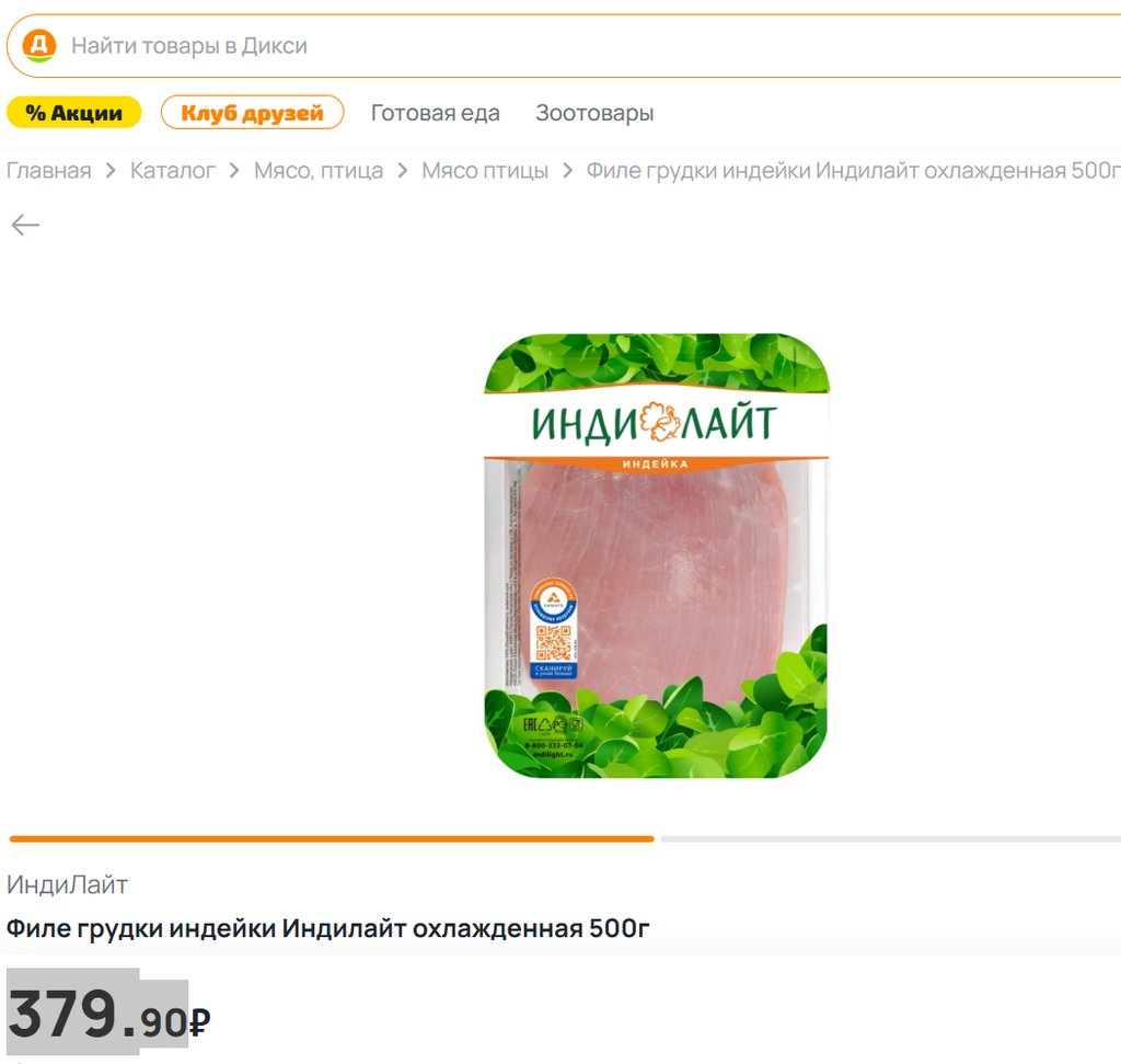 Филе грудки индейки Индилайт 500г