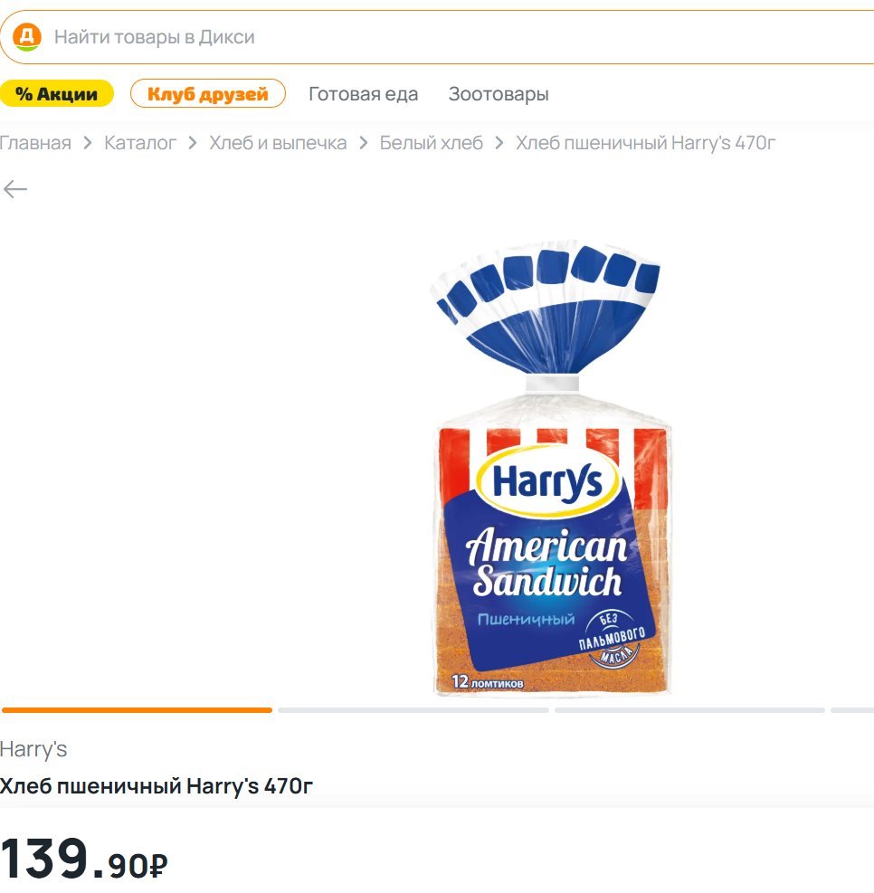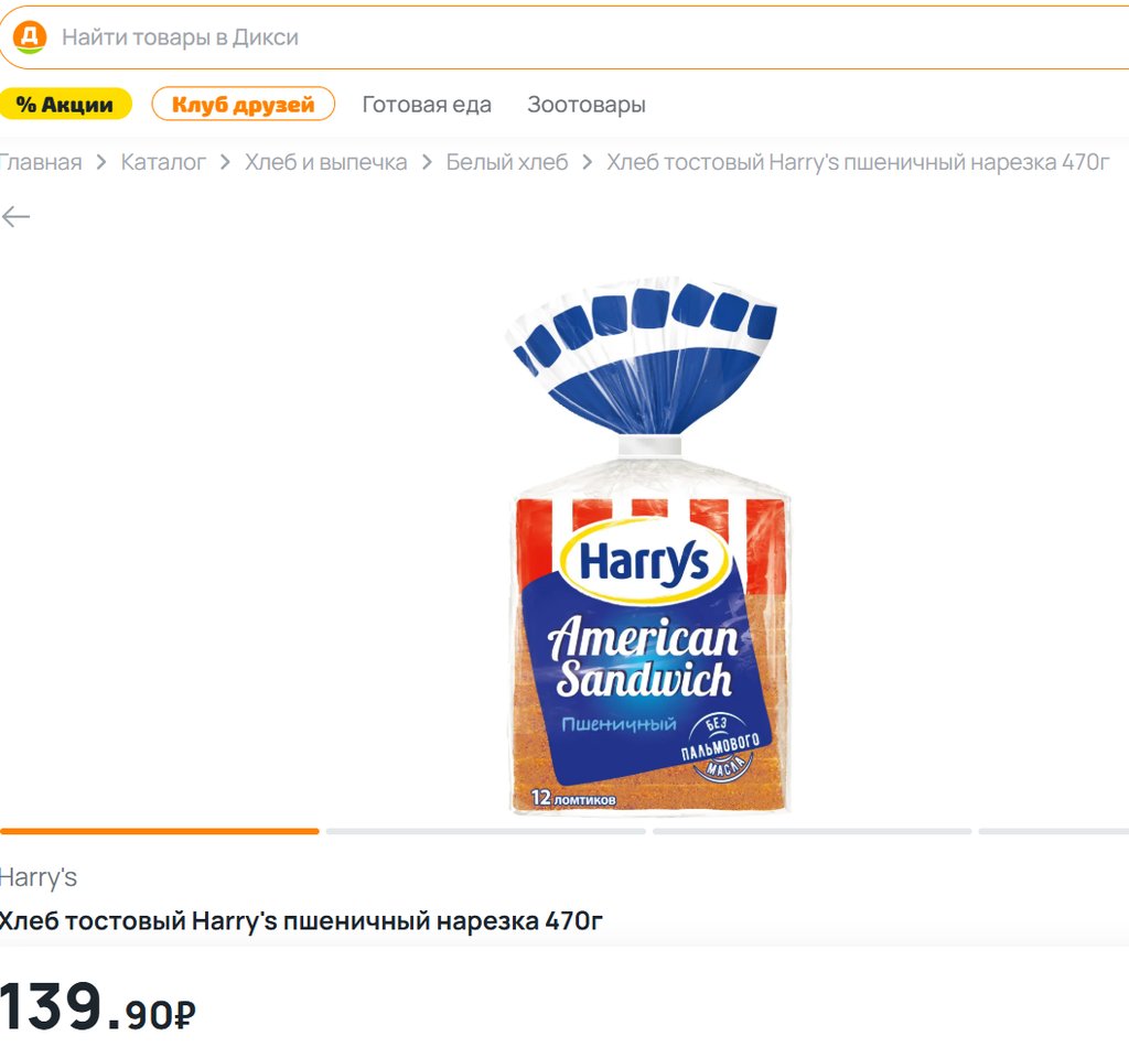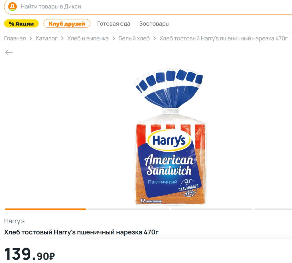 Хлеб Harrys American Sandwich пшеничный 470г