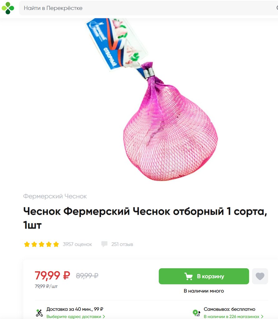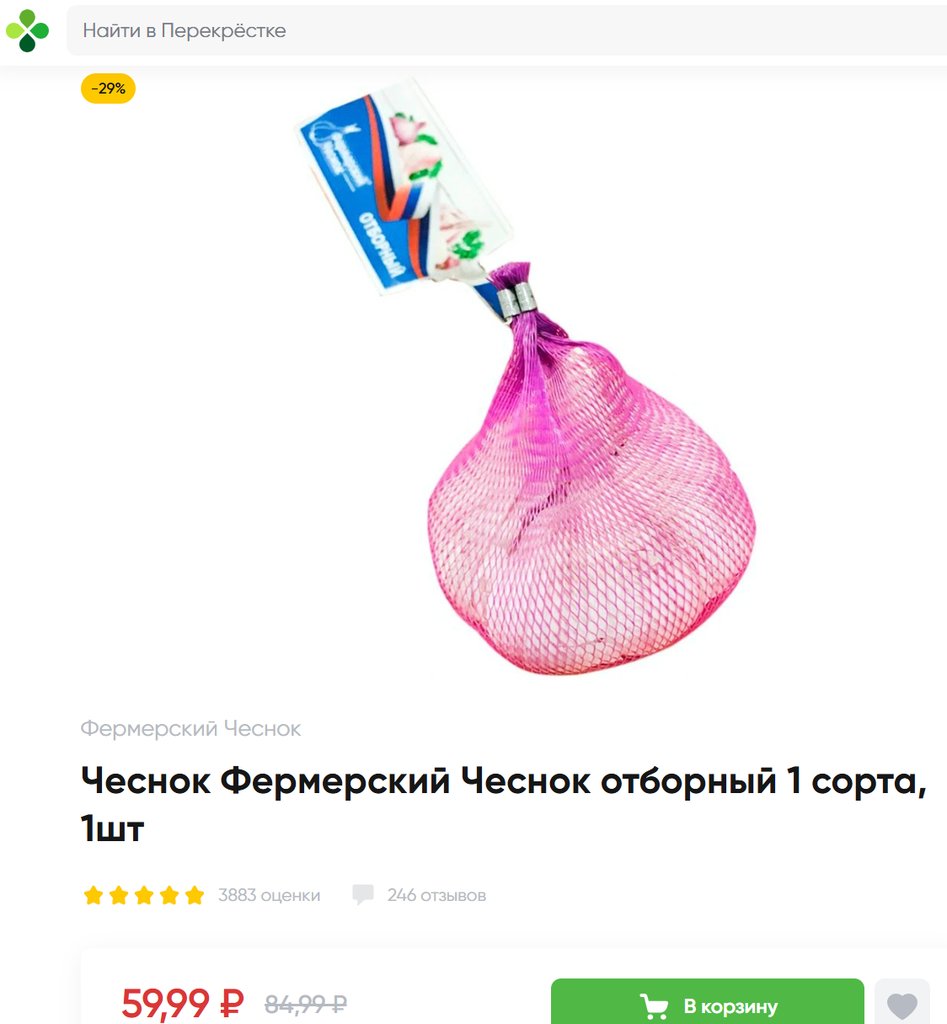 Чеснок Фермерский Чеснок отборный 1шт упаковка