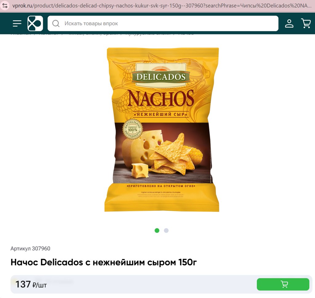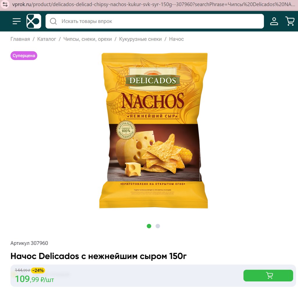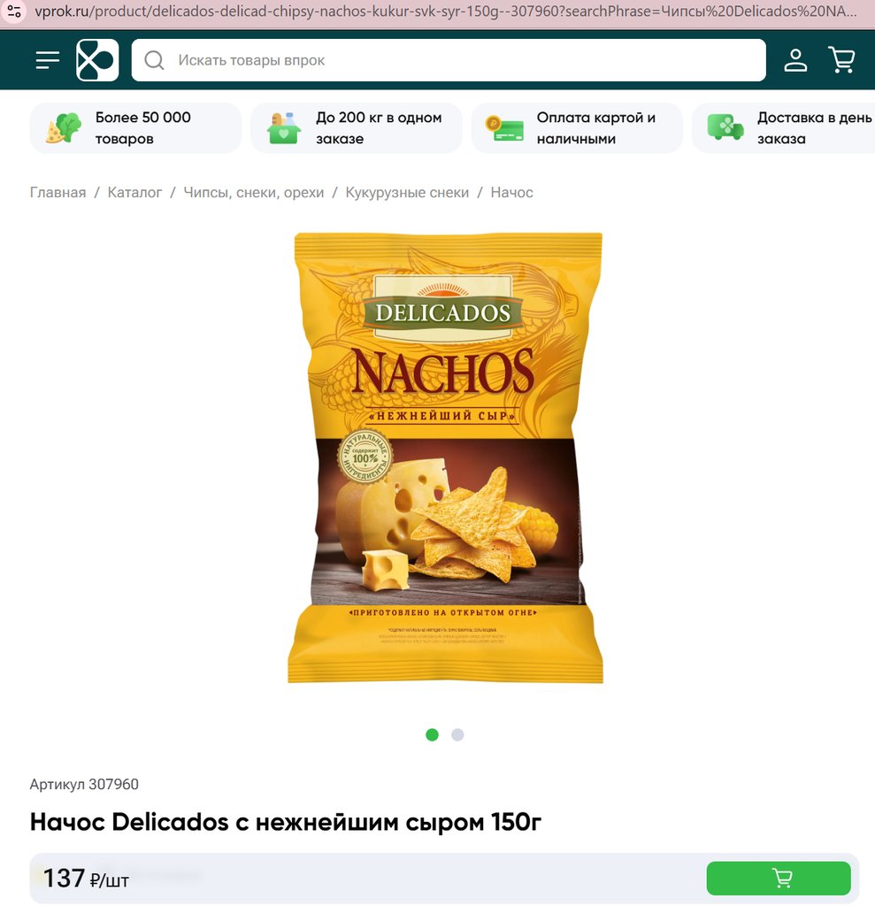 Чипсы Delicados NACHOS (Начос) Нежнейший сыр 150г