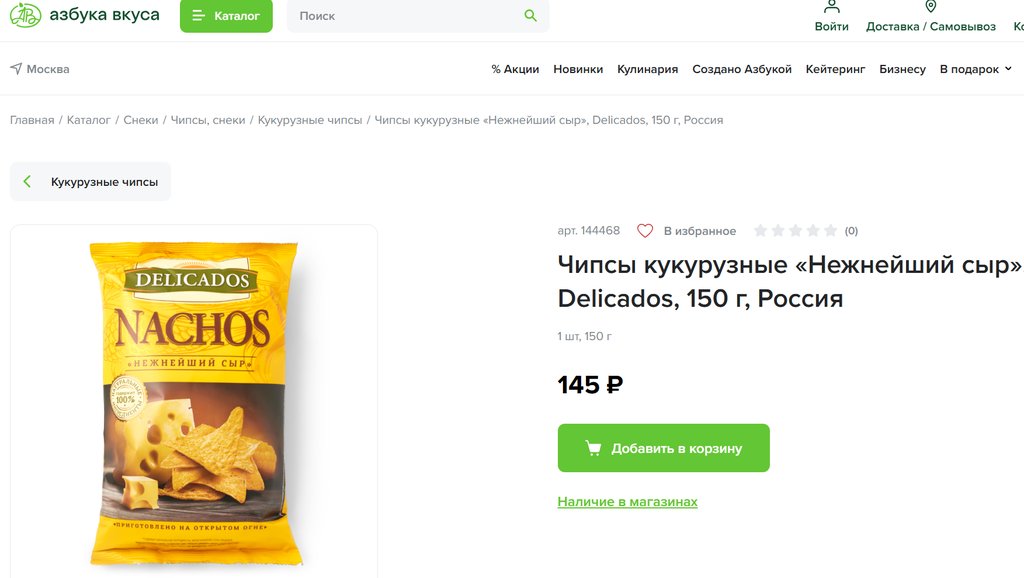 Чипсы Delicados NACHOS (Начос) Нежнейший сыр 150г